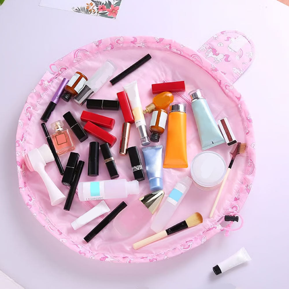- ✔ PACK UP INSTANTLY – Packing up all your products is no longer a chore. Just place everything on the open makeup bag, and pull the strings to close. It really is that simple.