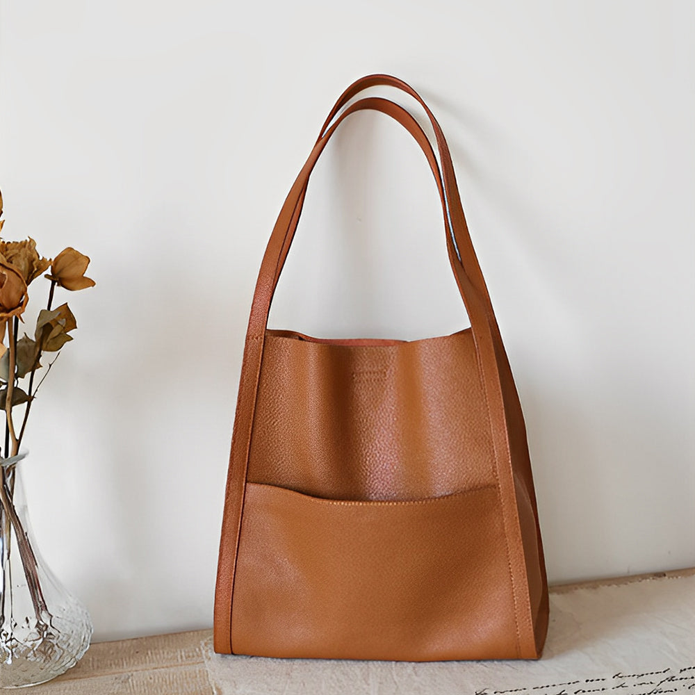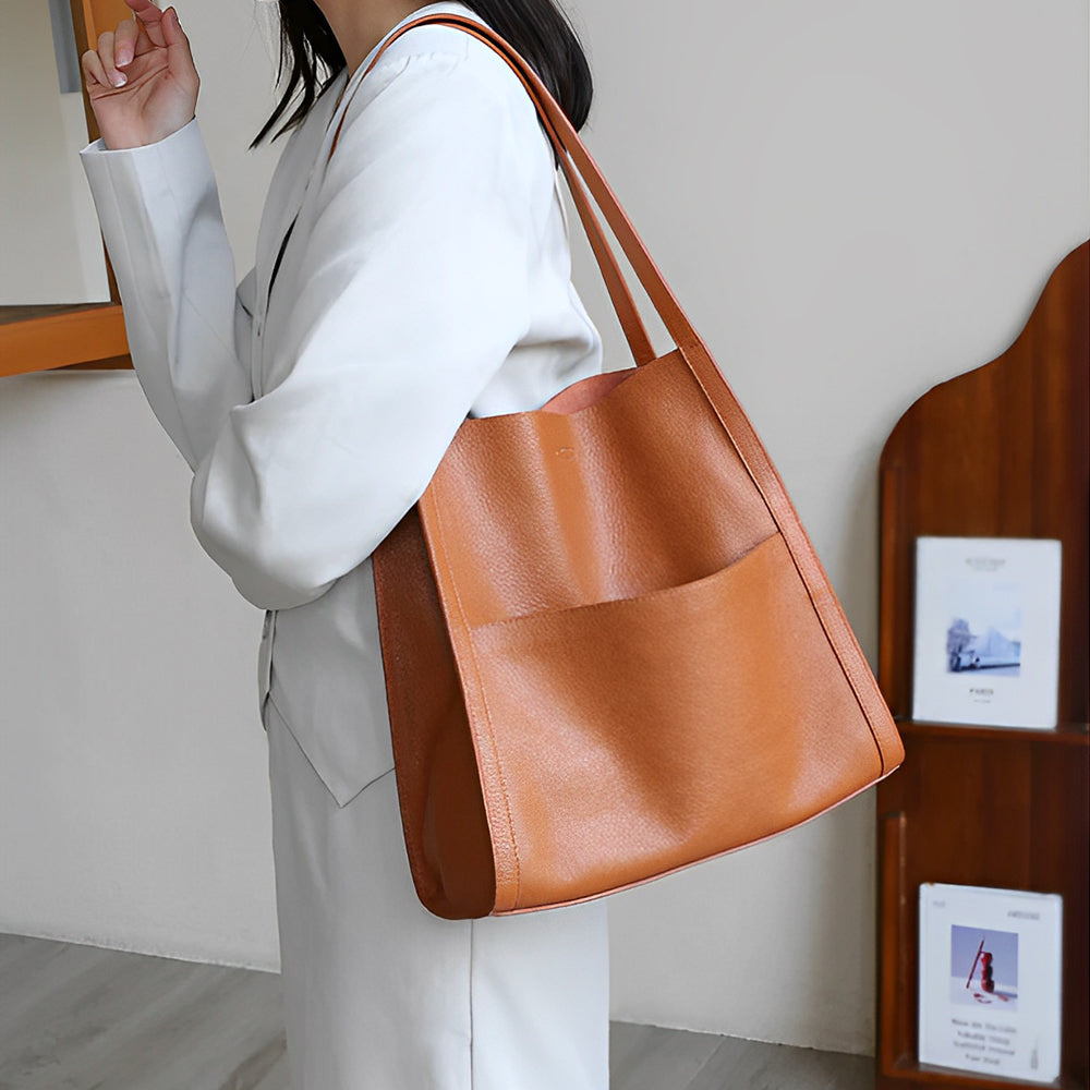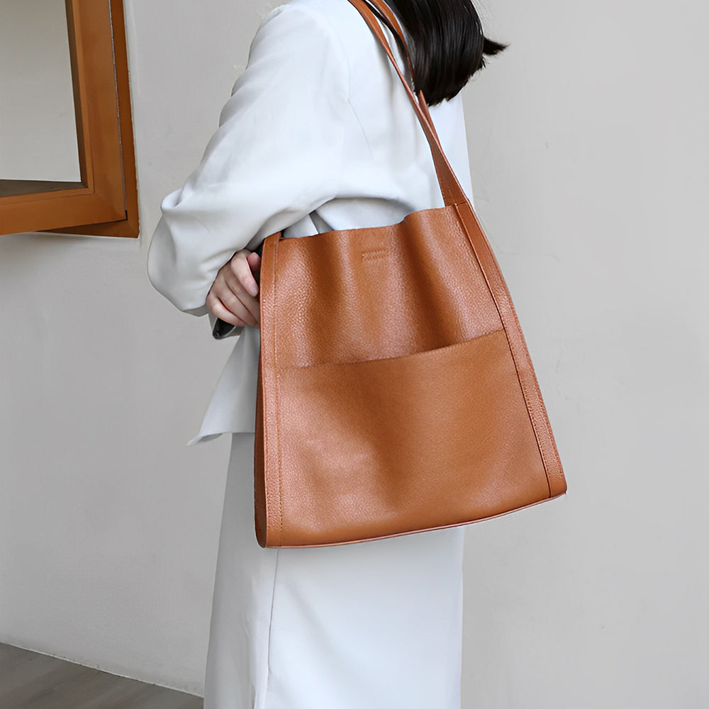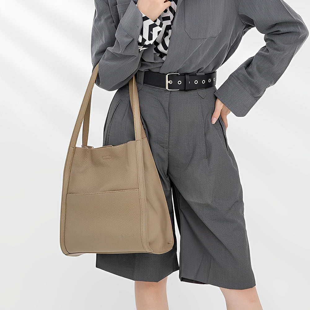 - 1 x Solid Color Simple Genuine Leather Shoulder Bag