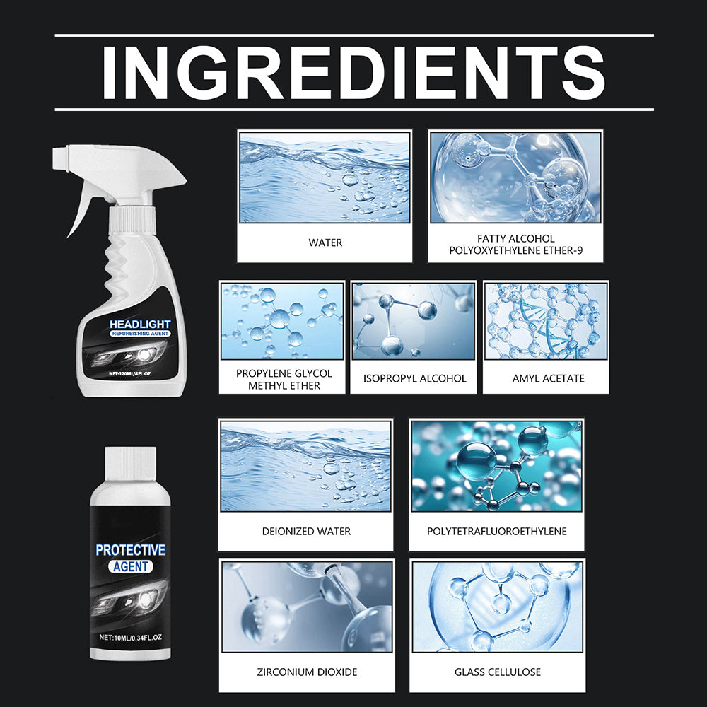 Complete Restoration Kit: Includes everything you need: cleaning spray, polishing compound, and microfiber cloth for a flawless finish.Improve light transmittance.