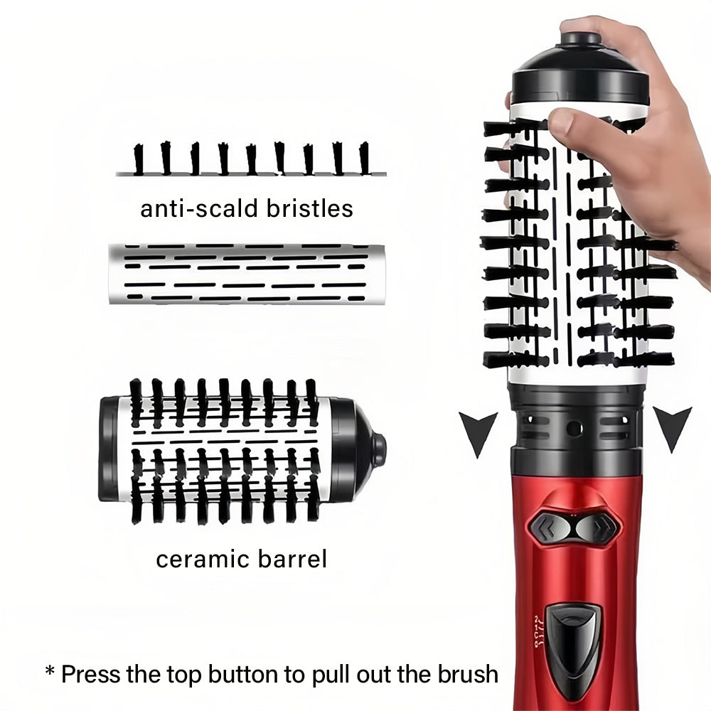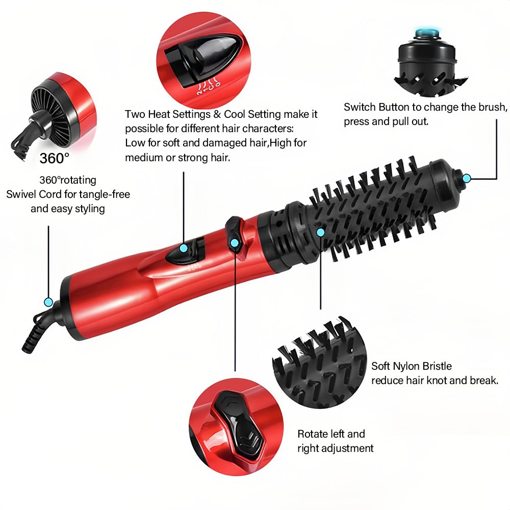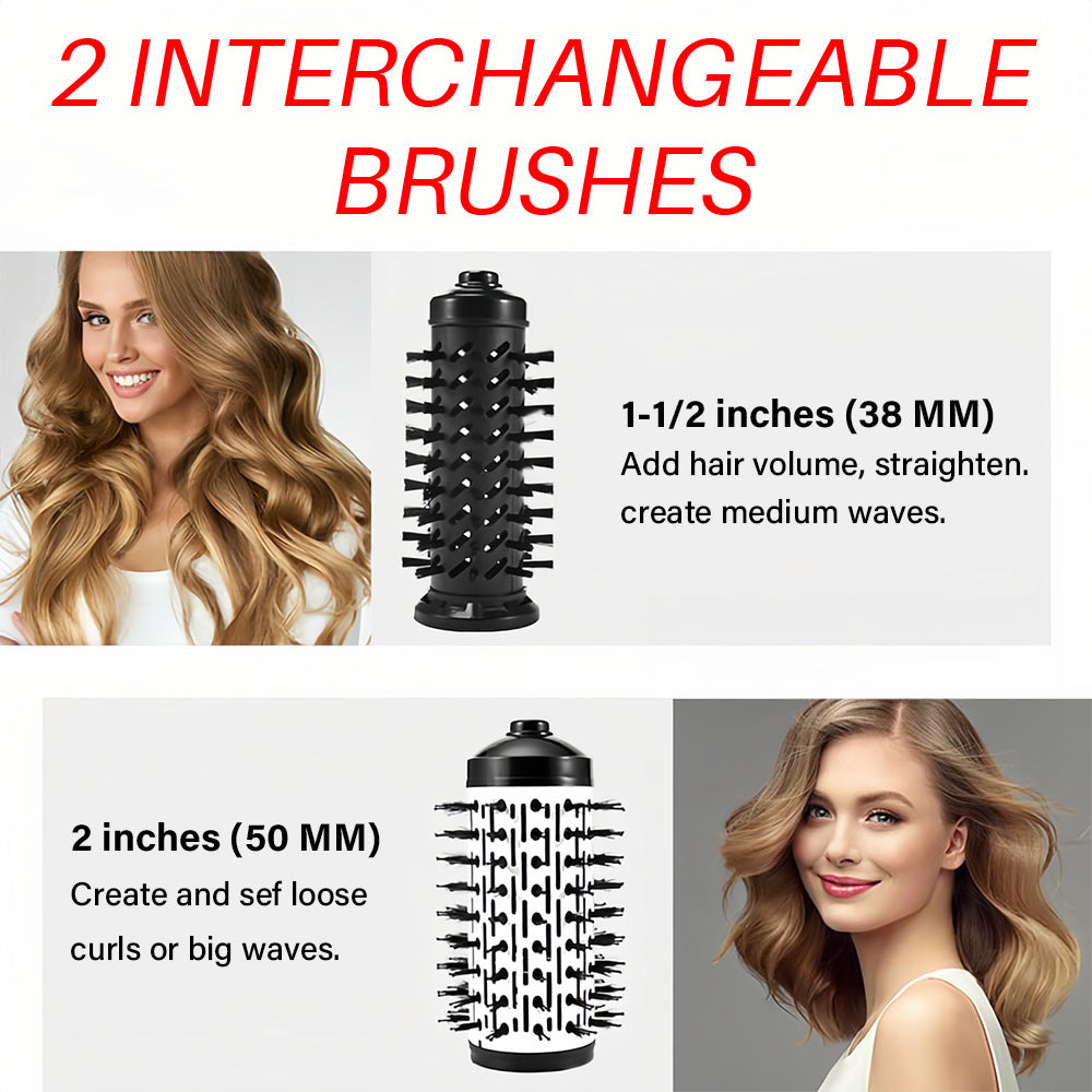 This hot air brush shaper and dryer are equipped with two interchangeable rotating brushes. A larger brush barrel is perfect for thick hair. A smaller lens tube is suitable for softer and more casual hair.