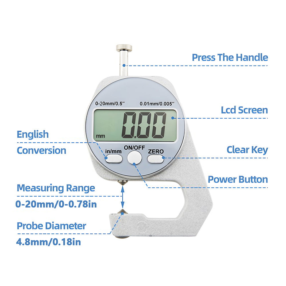 ✅Measuring Range: Measuring Range from 0 ~ 20 mm, High Resolution up to 0.01 mm (0.0005 inch).