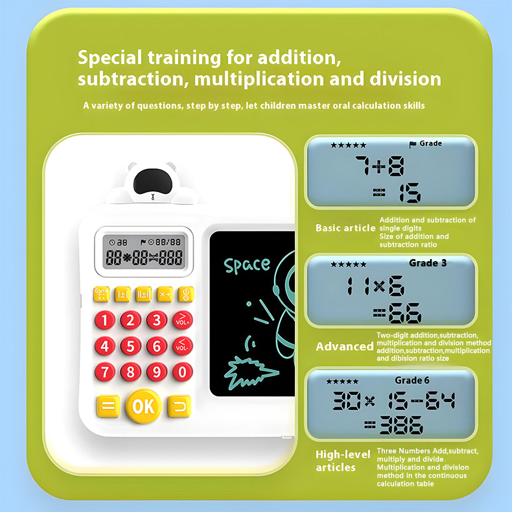 Your Child's Secret Tool to Becoming a Smart Calculator Practice Machine! - Dive into the Smart Calculator Practice Machine All-In-One Interactive Math Game for a blend of fun, memory, and logic games. This is where math meets adventure, and every challenge is a chance to play, learn and practice. With voice-guided activities and a sketch pad for hands-on problem-solving, kids aged 5+ will explore and enhance their math skills, memory, and logical thinking in one magical experience!