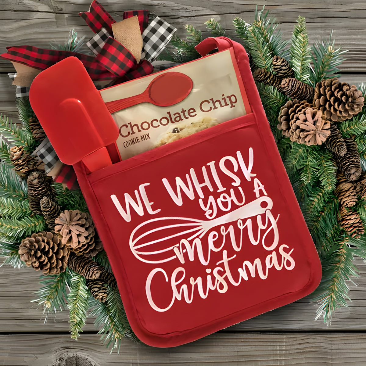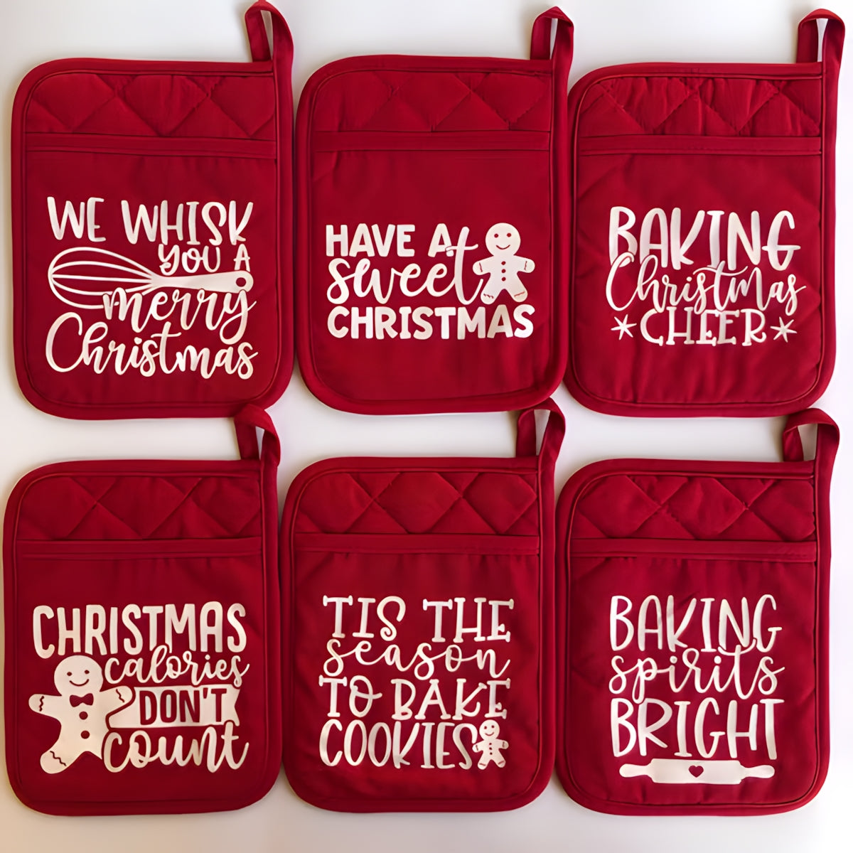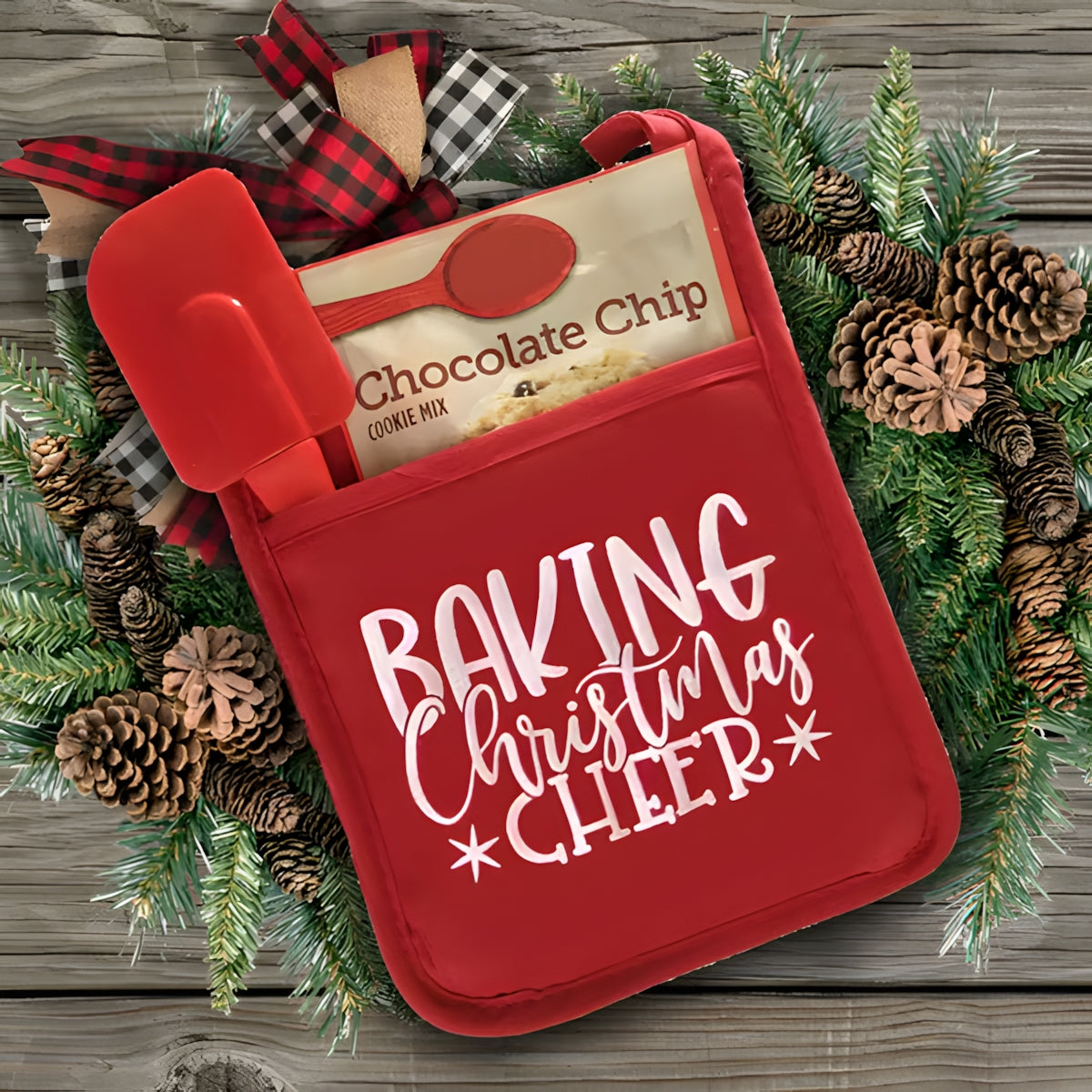 🌟These pot holders make a great gift for everyone on your holiday gift-giving list. Each potholder has a pocket that is perfect to fill with a baking mix and spatula, fresh baked cookies, cookie cutters and sprinkles, a gift card, etc.