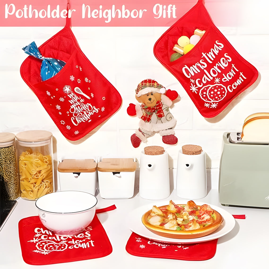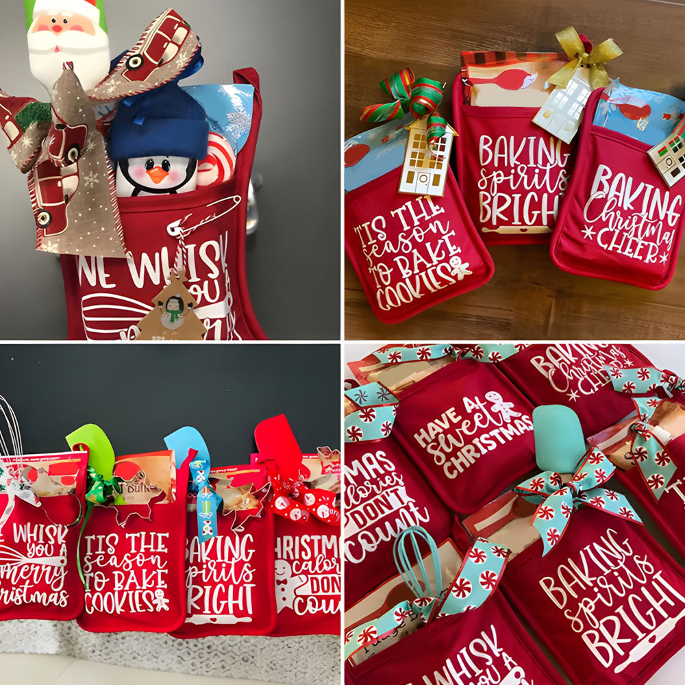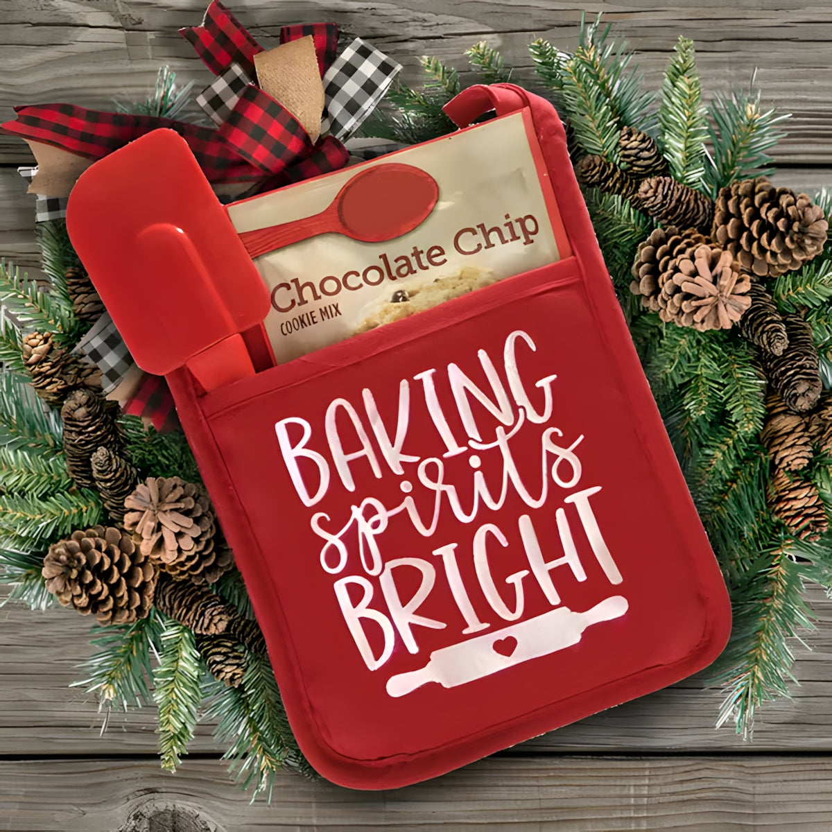 🌟These pot holders make a great gift for everyone on your holiday gift-giving list. Each potholder has a pocket that is perfect to fill with a baking mix and spatula, fresh baked cookies, cookie cutters and sprinkles, a gift card, etc.
