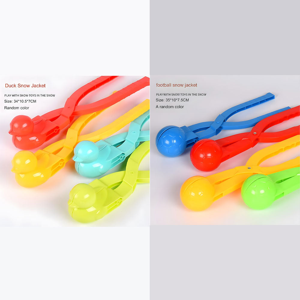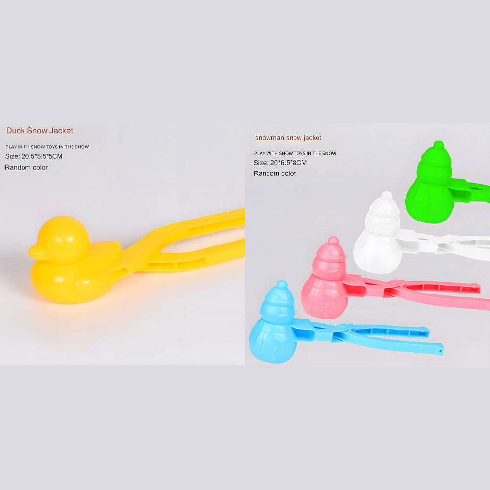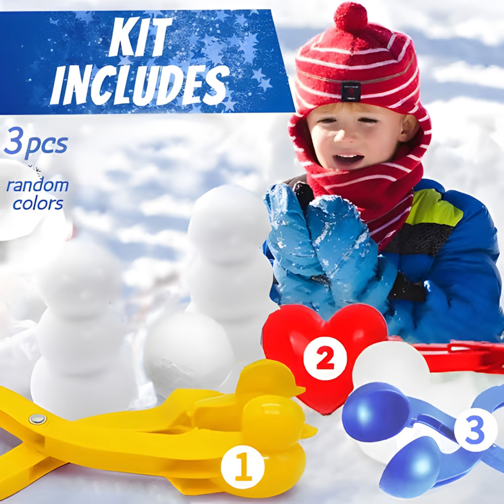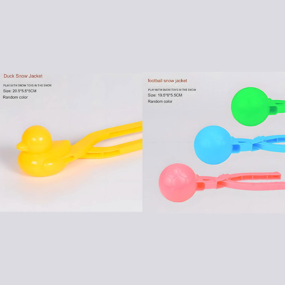 - The kit includes a snow duckling maker, a penguin snowman, a Football snow jacket, heart pack as well as a perfect snowball mold. Please note that the colors will be random.