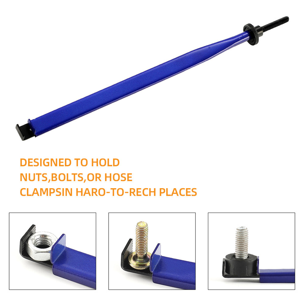 The Extension Clamp is a great tool for every toolbox. We've all been in those frustrating spots where your hand can't quite or having to wait for a hot muffler or radiator to cool before you can reinstall a bolt. The Extension Clamp will also save you time by not having to remove other parts on your equipment to get into a tight spot.