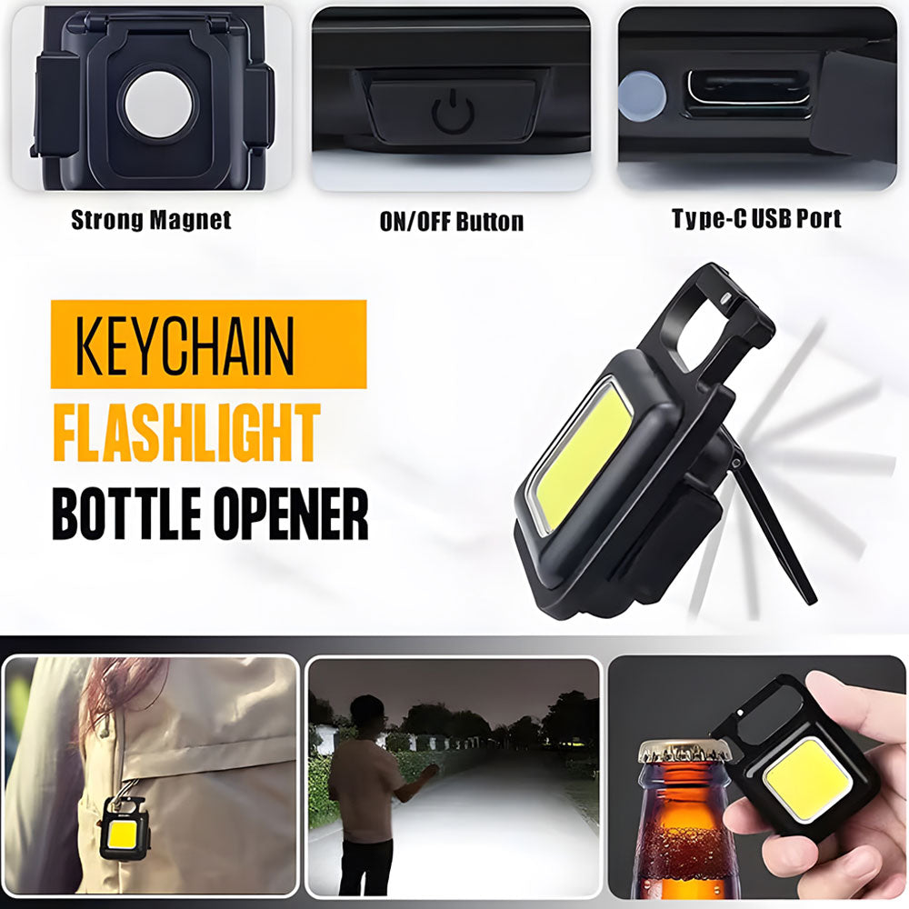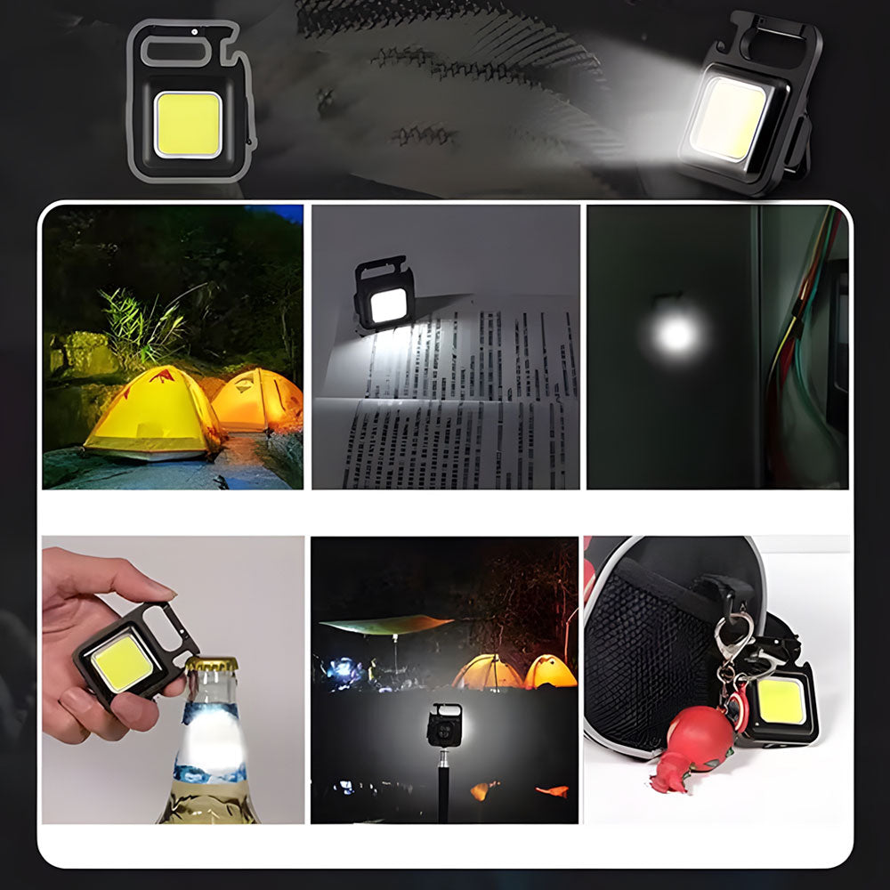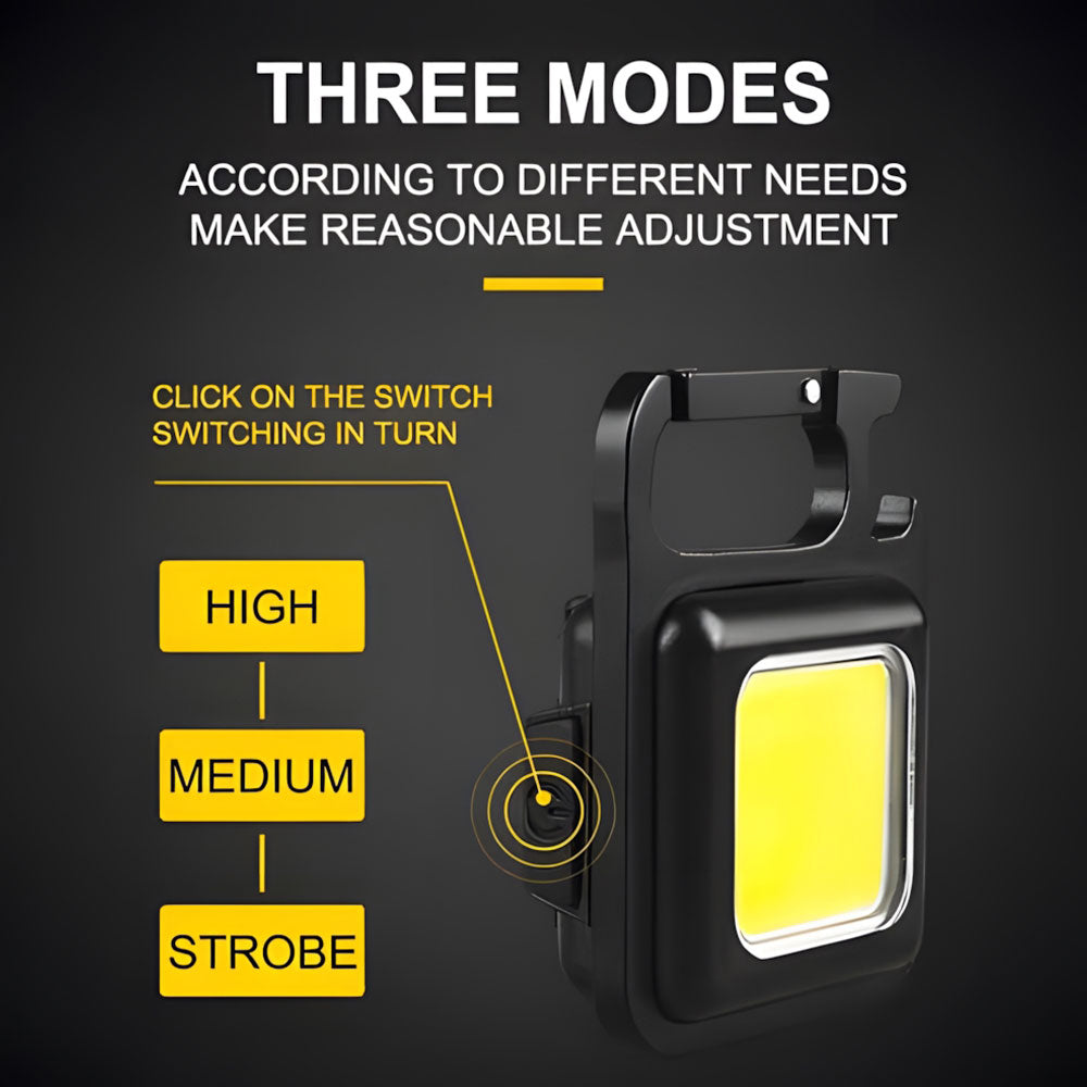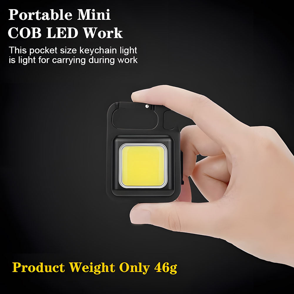 Portable and easy to use, mini Cob Keychain Work Light is a perfect flashlight to have while night walking, hiking, fishing, camping, or emergency use.
