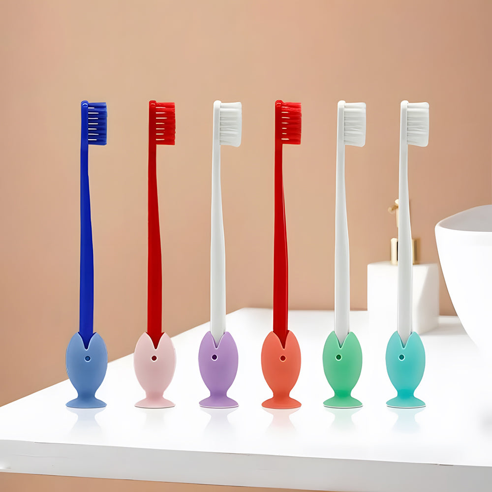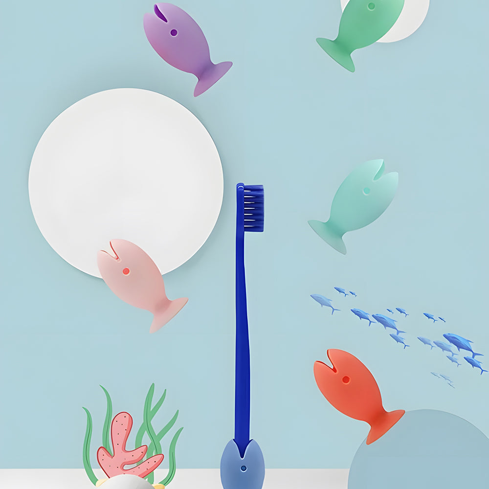 - Unique Design: The cute fish design with its mouth open, makes brushing your teeth easy and enjoyable. The gaps allow drainage and ventilation, keeping the brush head dry and clean.