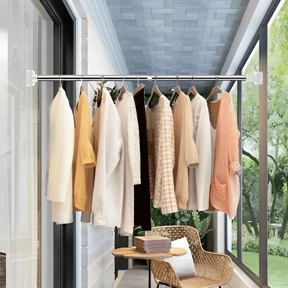 ✔️You can freely combine the rods' placement so that closets or shelves will have more space. Easy to use, no screws required, rubber tip to protect closets and never no holes.