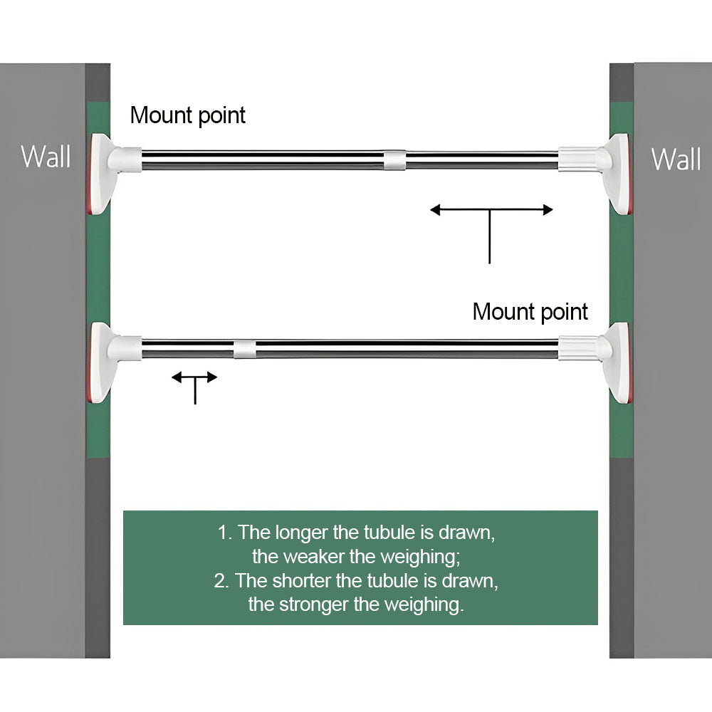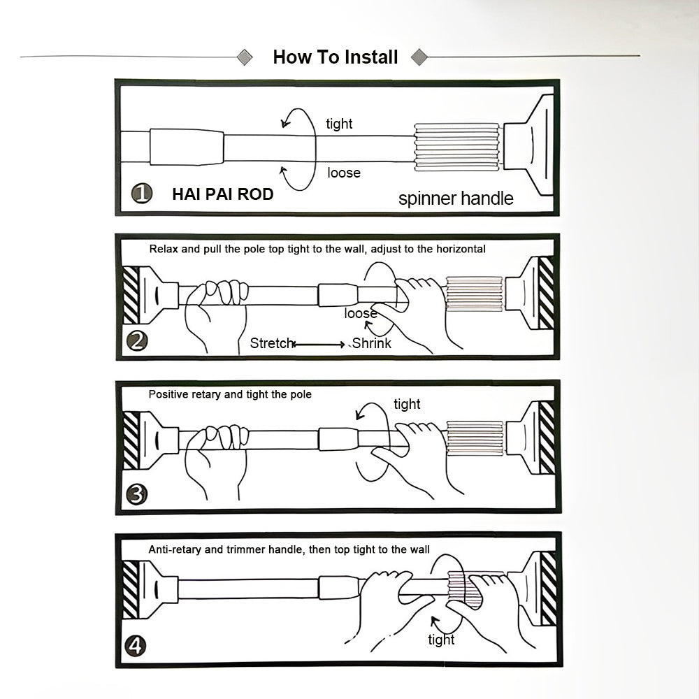 A: The extension part of the Tension Rod rotates out. After it is suitable for your own use length, the delay part is compressed in the opposite direction.