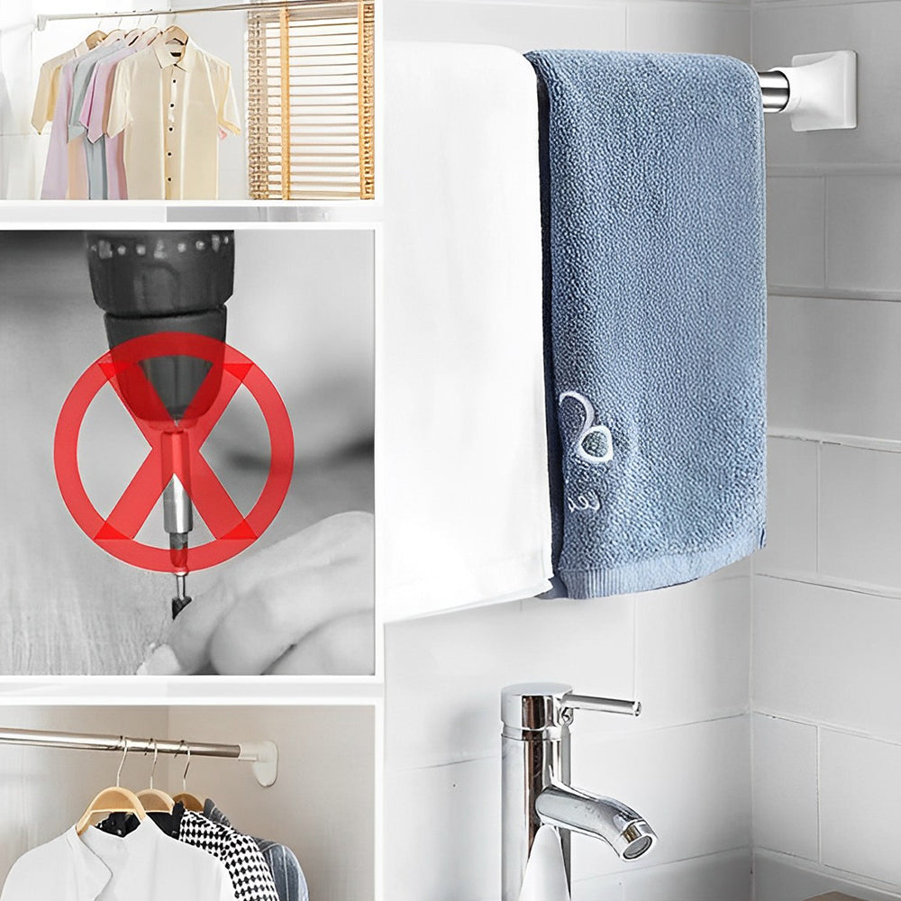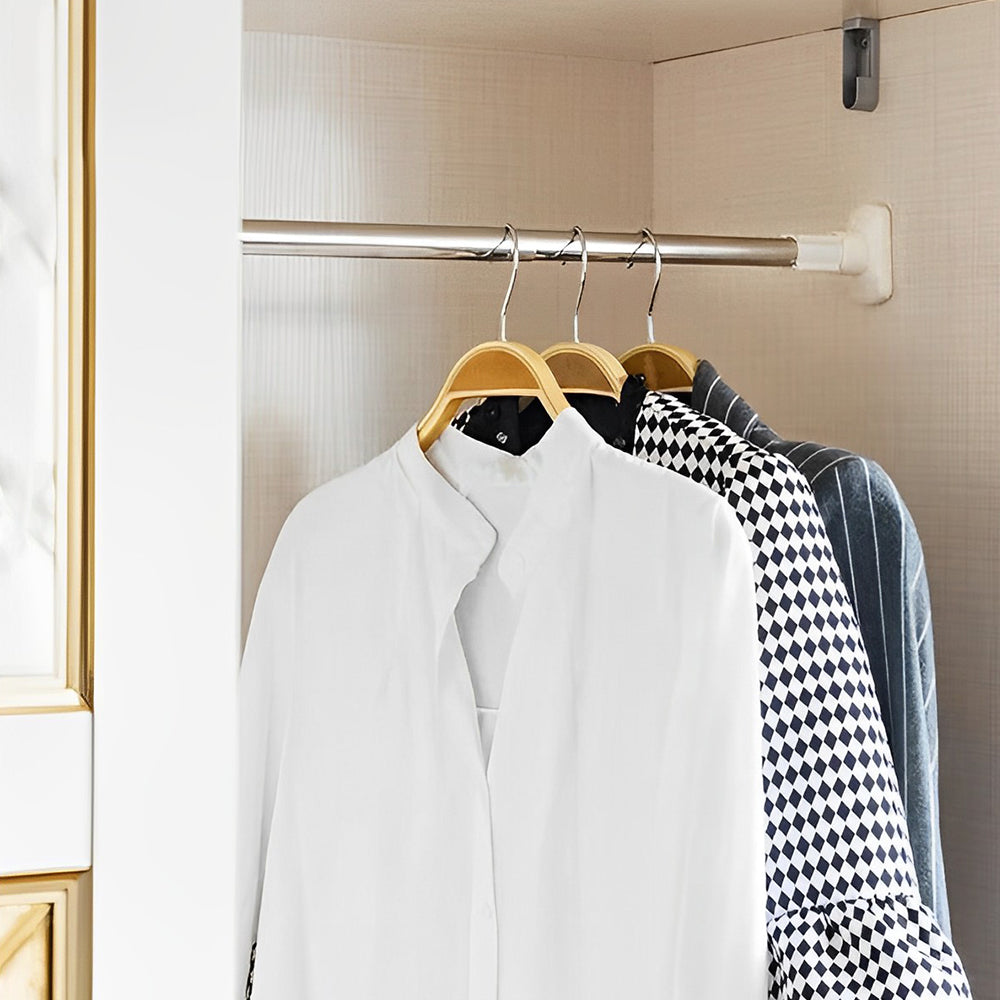 [UNEXPECTED COMBINATION] You can freely combine the rods' placement so that closets or shelves will have more space. Easy to use, no screws required, rubber tip to protect closets and never no holes.
