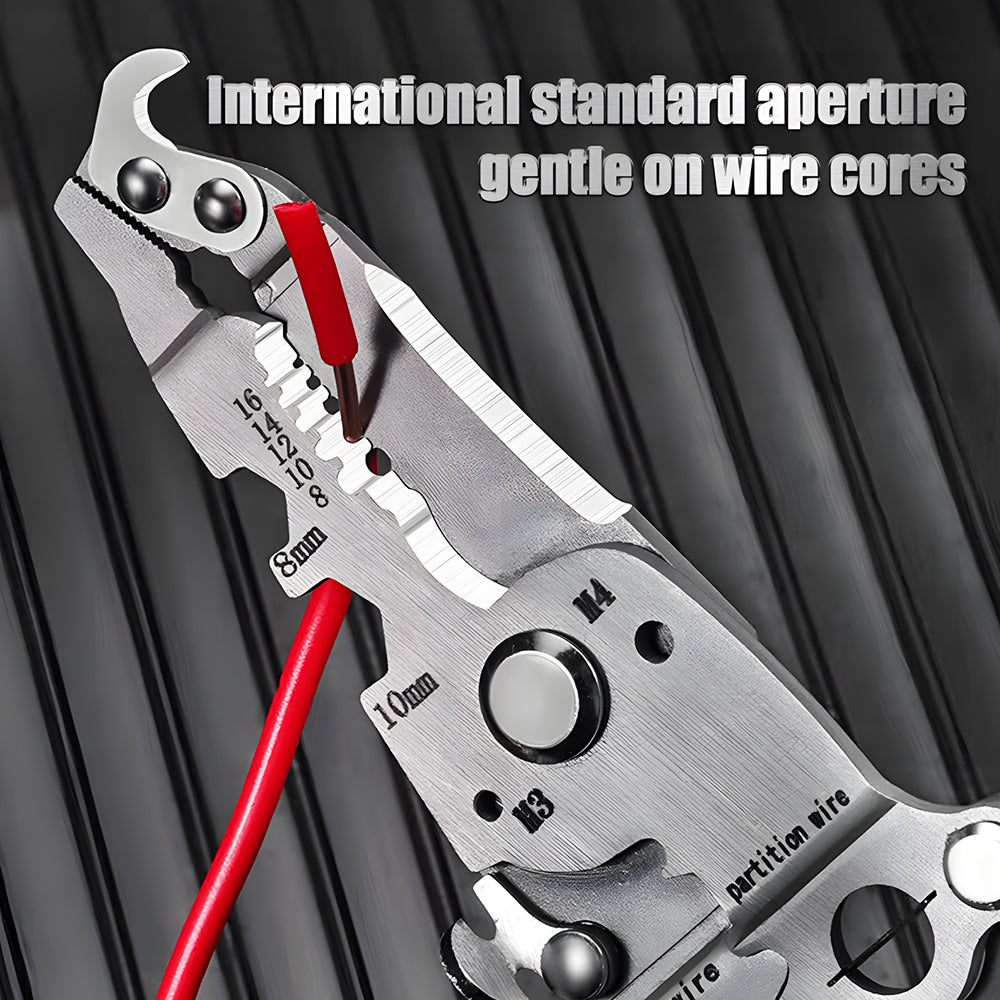 - Precise Wire Stripping Hole: Precision stripping hole design, neat cutting, no damage to the wire core, say goodbye to messy and damaged wires. Suitable for stripping 8/10/12/14/16 AWG solid and stranded wires, easy to separate, convenient for bending, shaping and pulling wires.