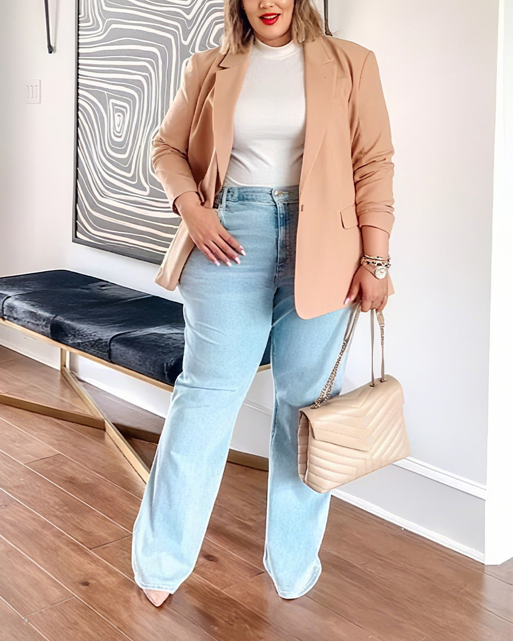 On-trend High Rise Flare Jeans have the ideal slimming fit — offer a flattering silhouette from the waist down in a full-length fit that holds you in at the top and flares out below the knee. The jeans come in dark and light blue shades, sleek and sexy to hug your curve.