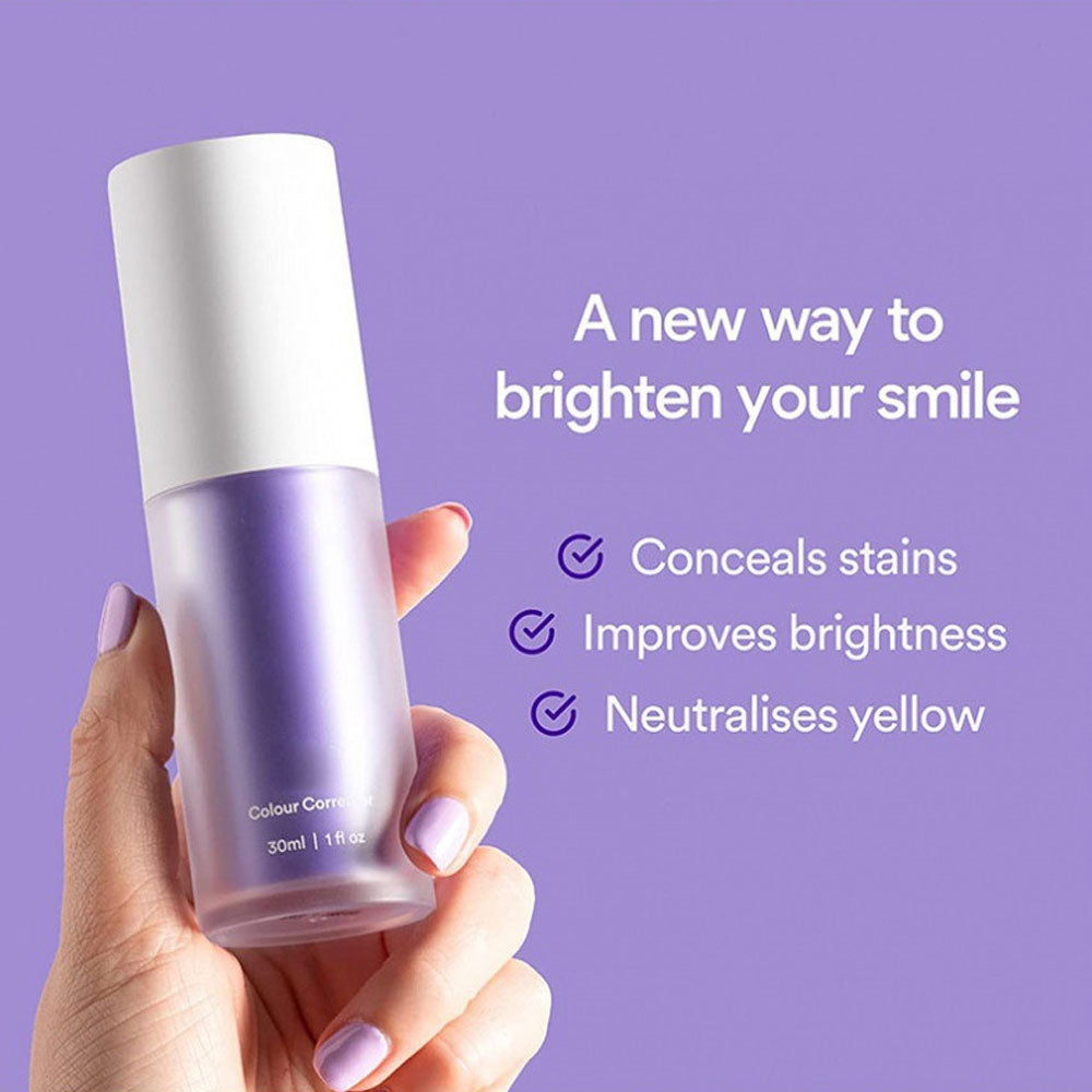- Colour correction all starts on the colour wheel, where purple and yellow are complementary colours opposite to each other. Applying purple onto your teeth will neutralise the yellow undertones and cancel them, revealing a perceptively brighter shade of white. Pretty cool right?