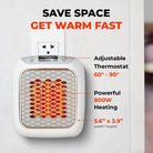 - Tiny Space Saving Design: Our mini heater for office frees up floor space and can be used anywhere. Great for small spaces like bedroom, office, garage, basement, or anywhere with a wall outlet. No more messy cable clutter.