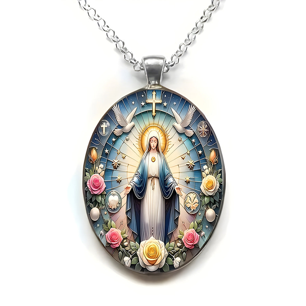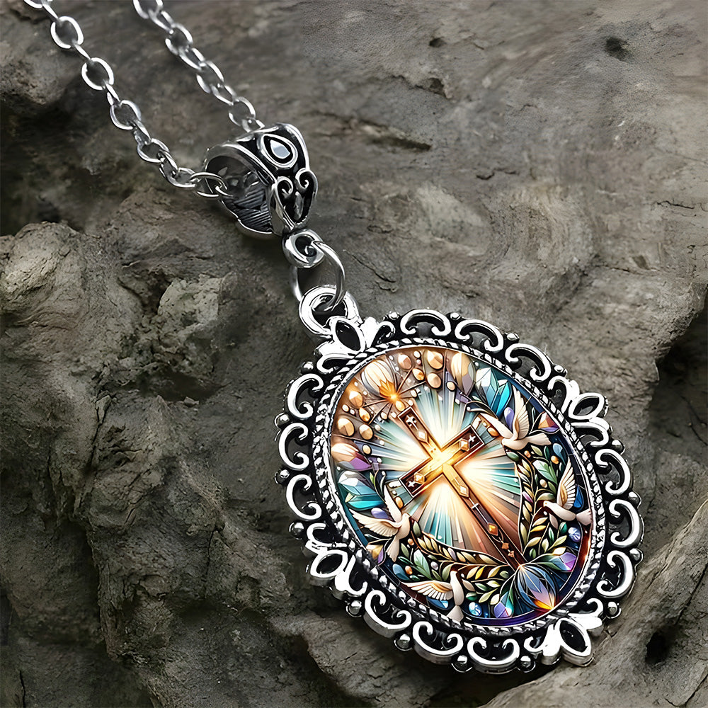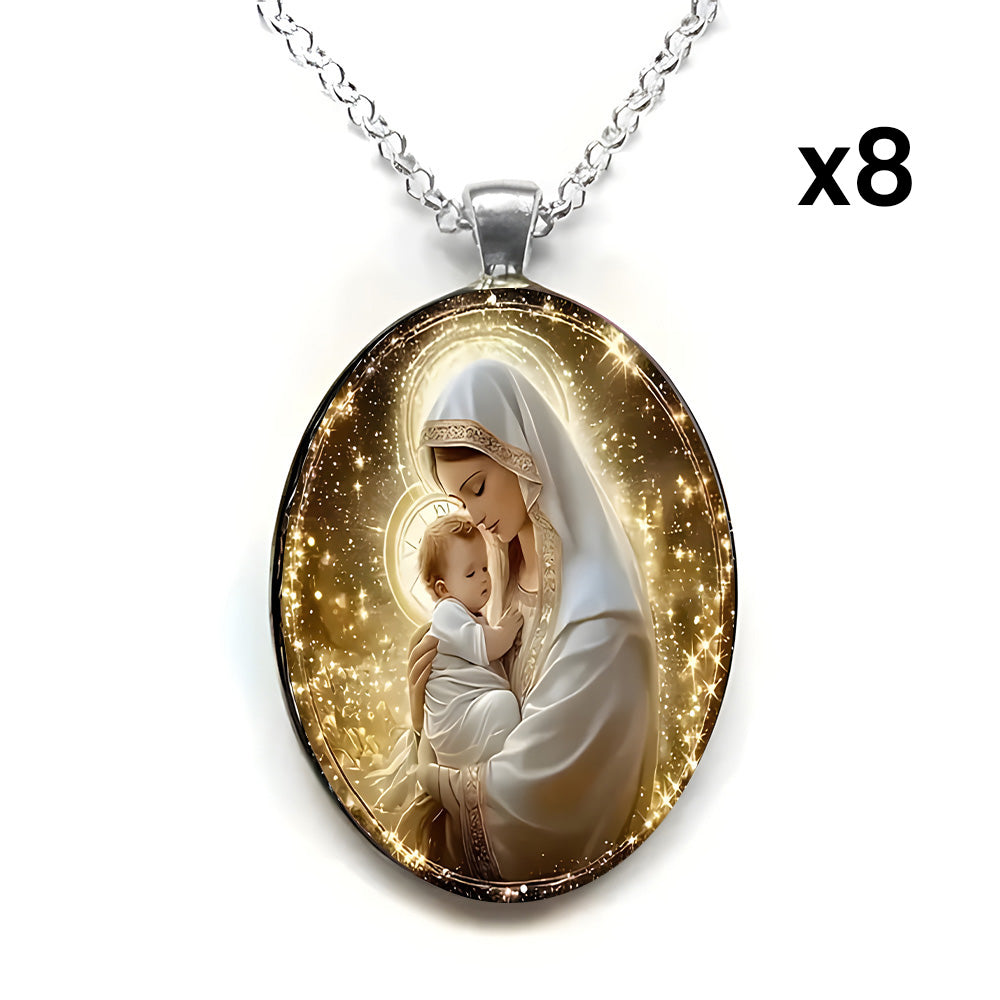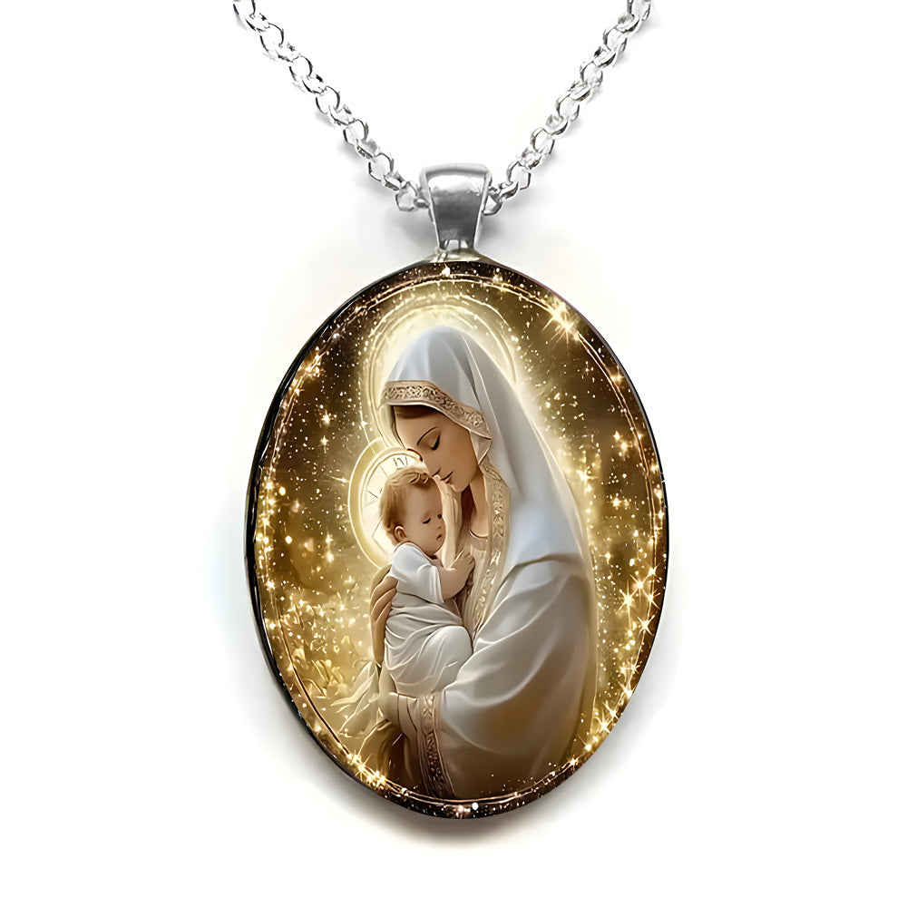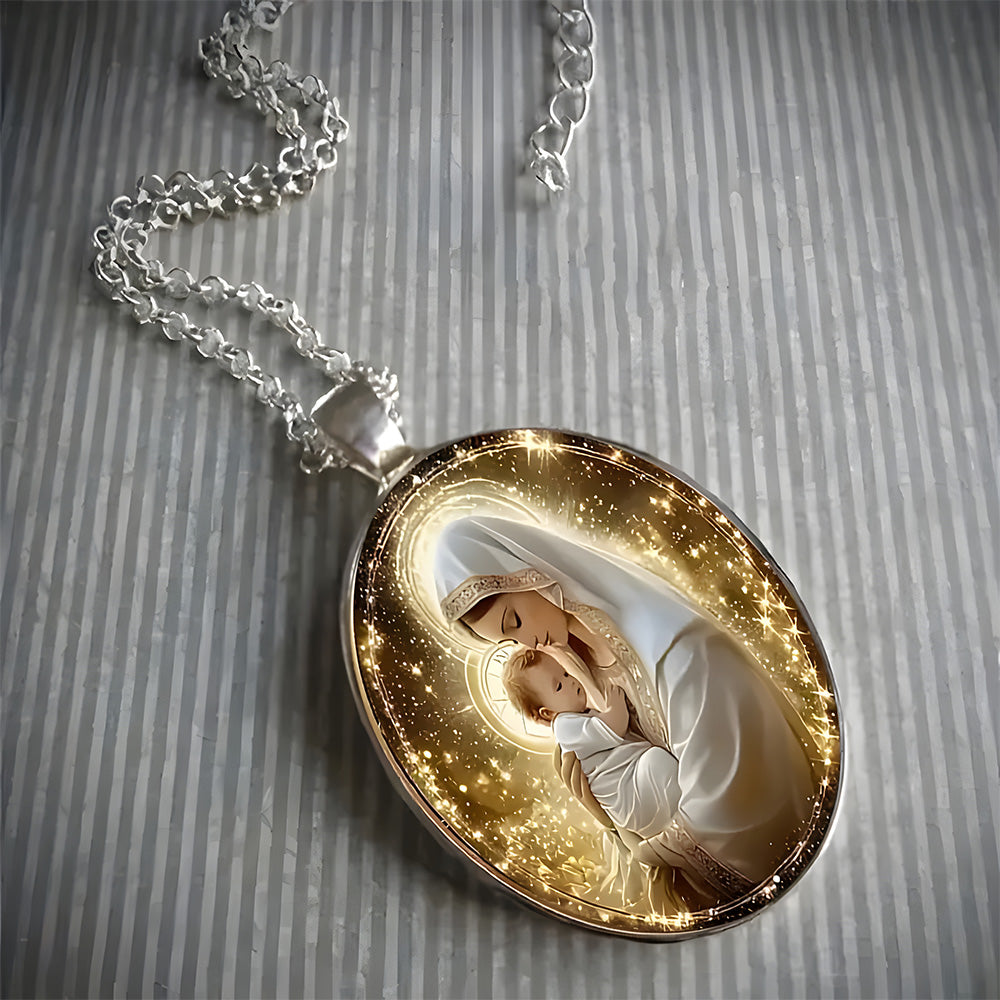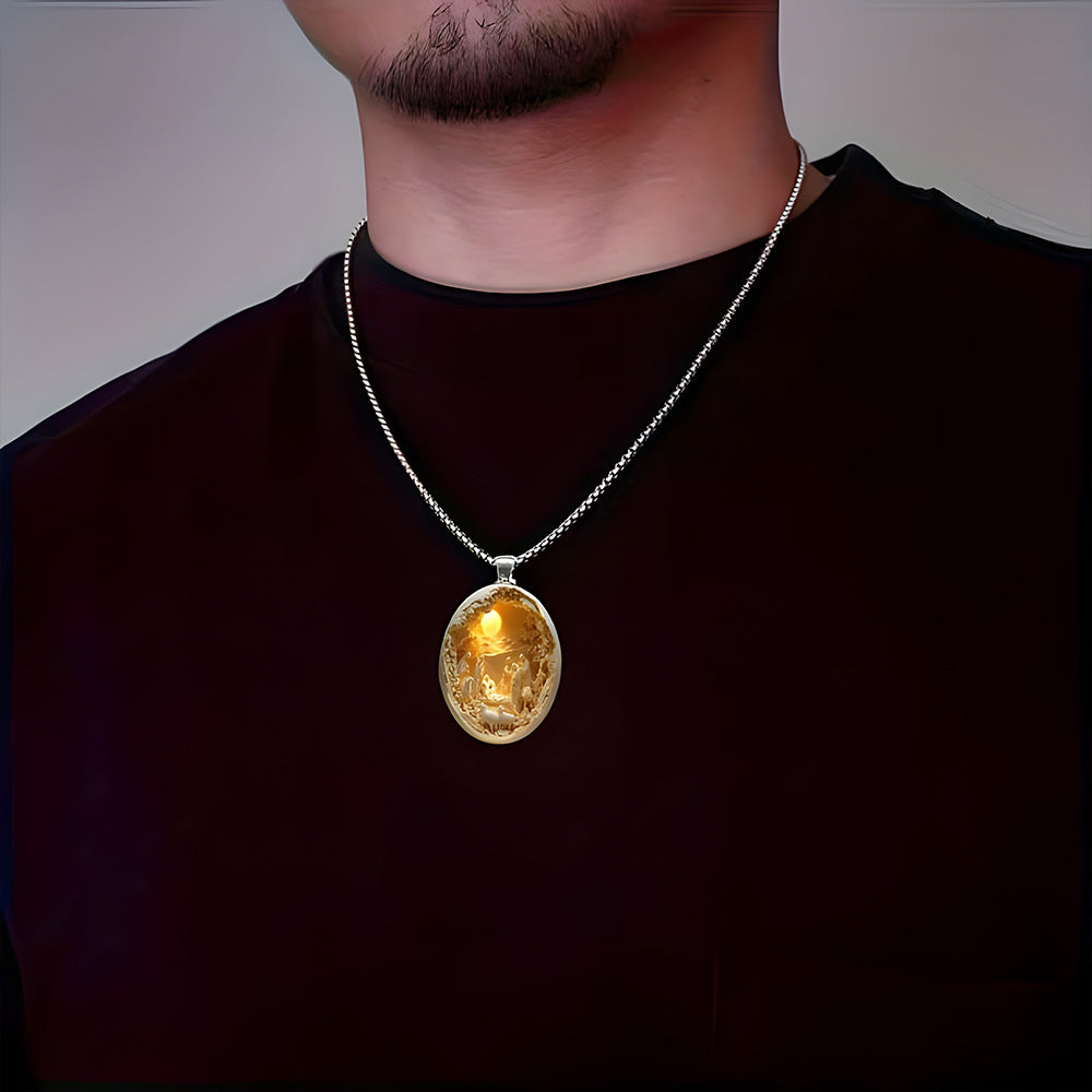 Beneath the starlight of Bethlehem, the scene of the manger, the Holy Family, and the shepherds is the most touching testimony to "God loves the world." This pendant takes glass + alloy as its foundation: transparent glass clearly reveals the warm scene of Christmas night, allowing the faint glow of the Star of Bethlehem and the tenderness of the Holy Mother and Child to shine unobstructed; strong alloy outlines the contours and supports the scene, as stable and reliable as faith itself. Every detail is not mere decoration, but a way to turn the core faith of "the Savior's birth" into a tangible symbol that can be held in the palm or worn close to the body.