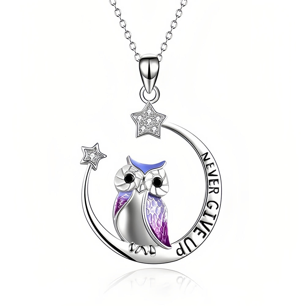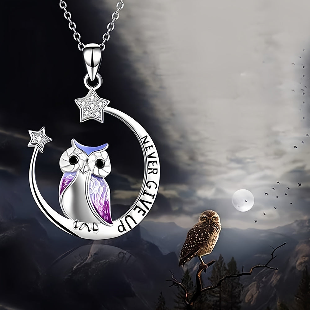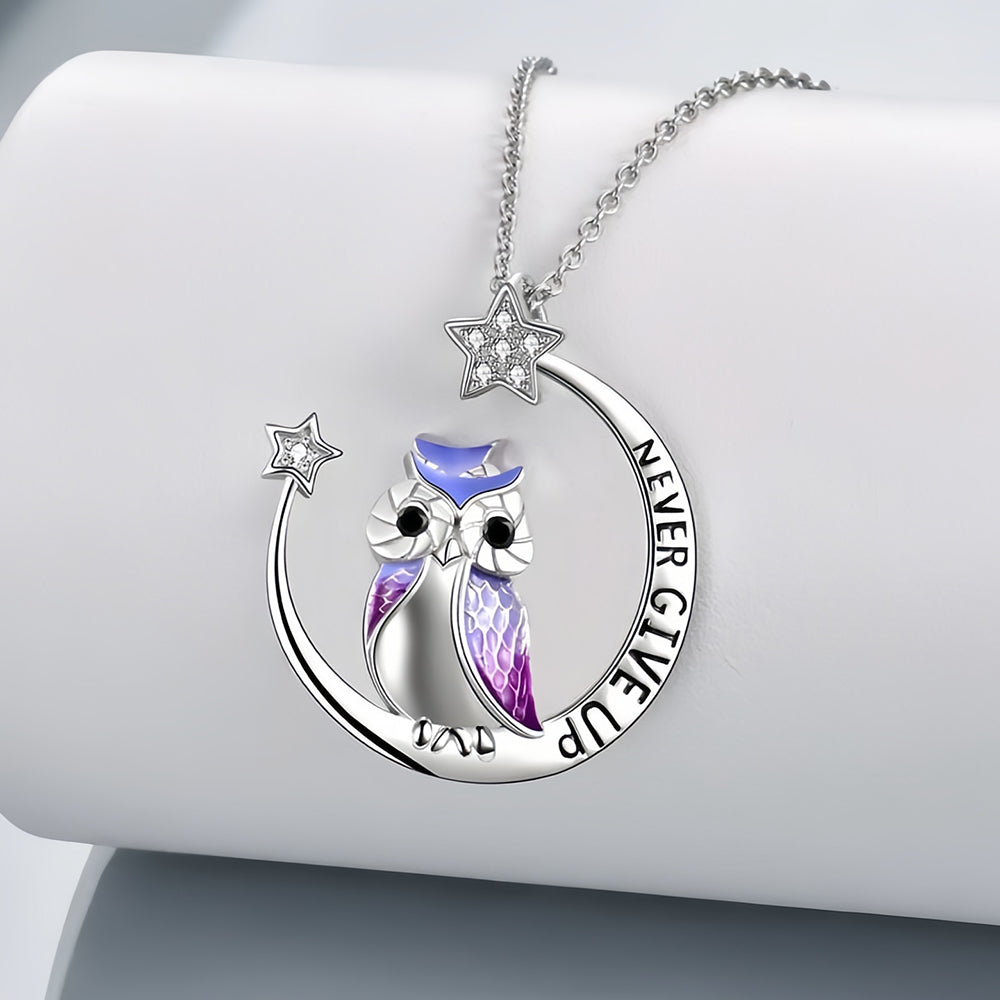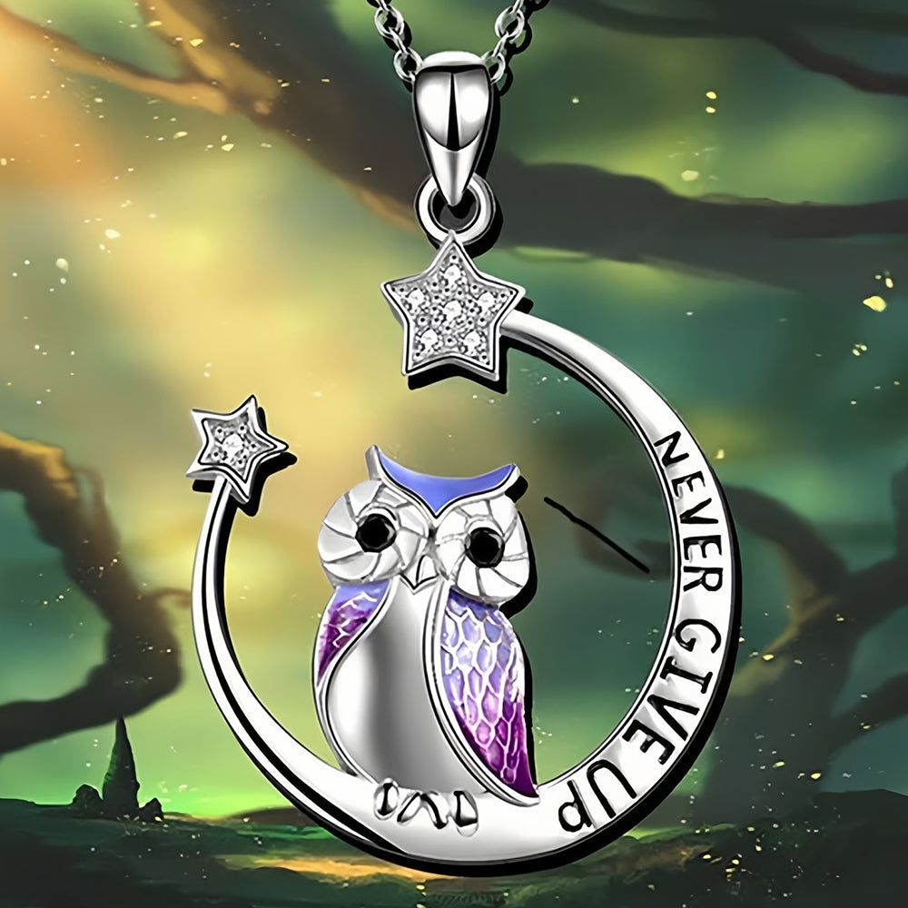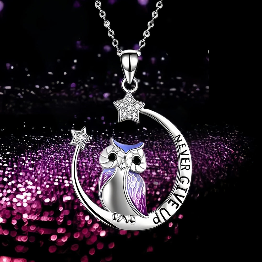 🦉The owl necklace is the symbol of wisdom, bravery and nobility, freedoms, secrets, dreams, magic, darkness, silence, seeing hidden things and shape-shifting. Wonderful gift or perfect for the owl lover, engraved with the word "Never give up"🦉🔥