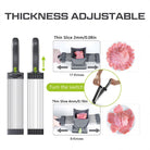 HIGH-QUALITY: Our meat slicer's blades are crafted from high-quality stainless steel with an 8° sharp edge for professional-grade cut, open the bottom suction cup , it can be firmly attached to the smooth desktop to ensure that it will not shake during use