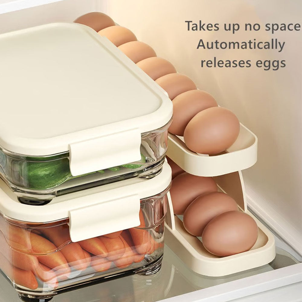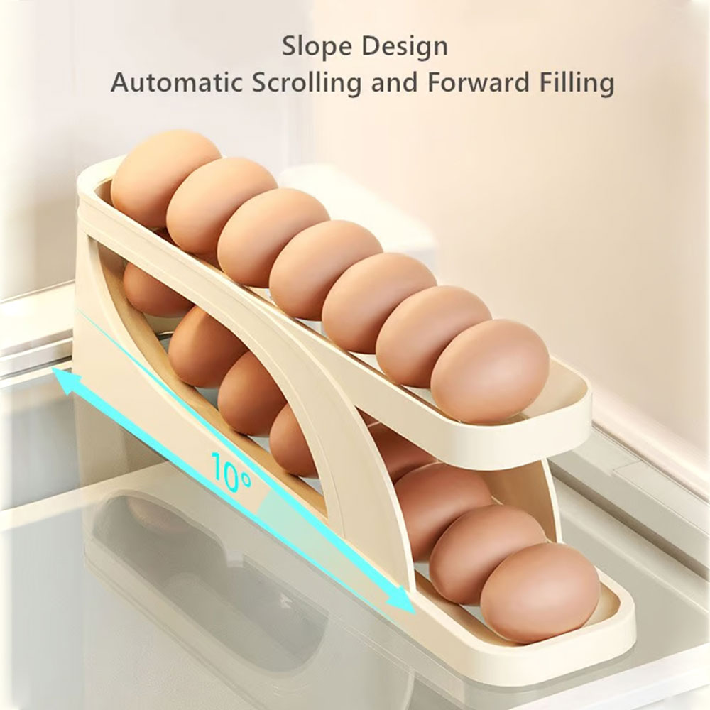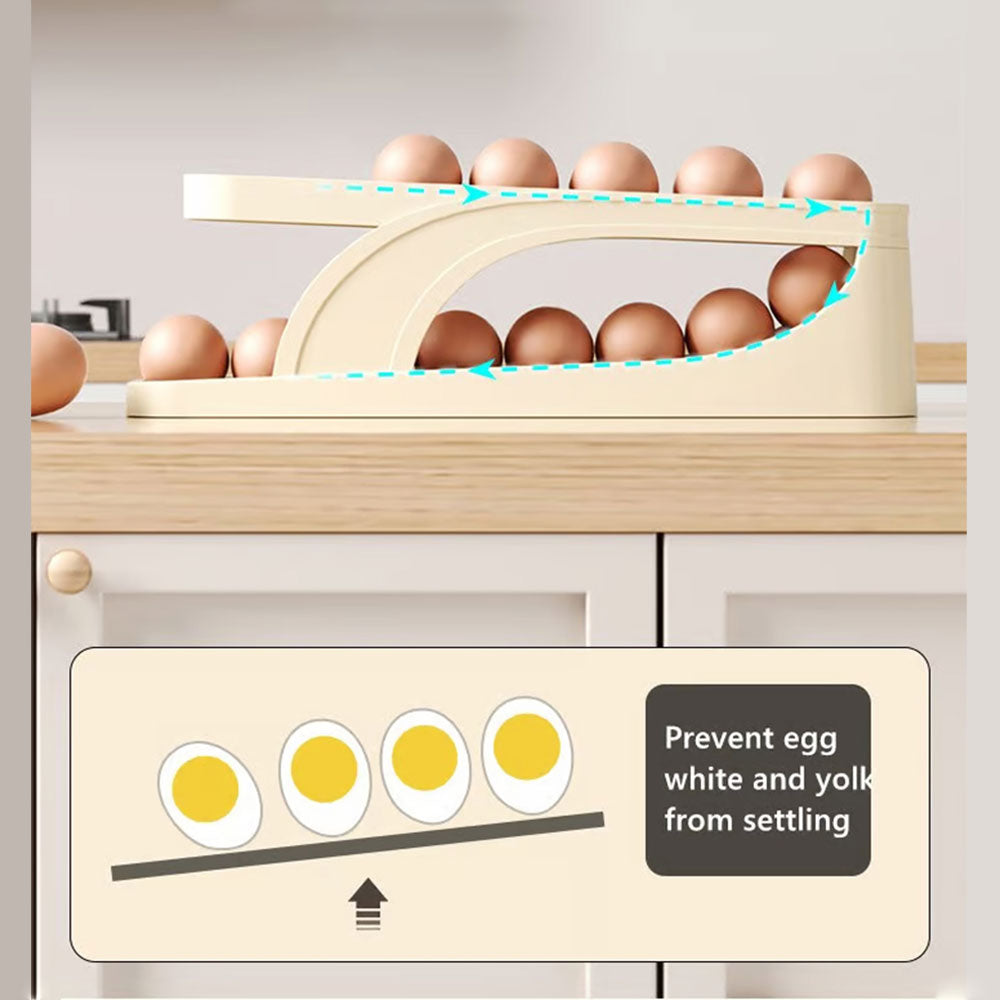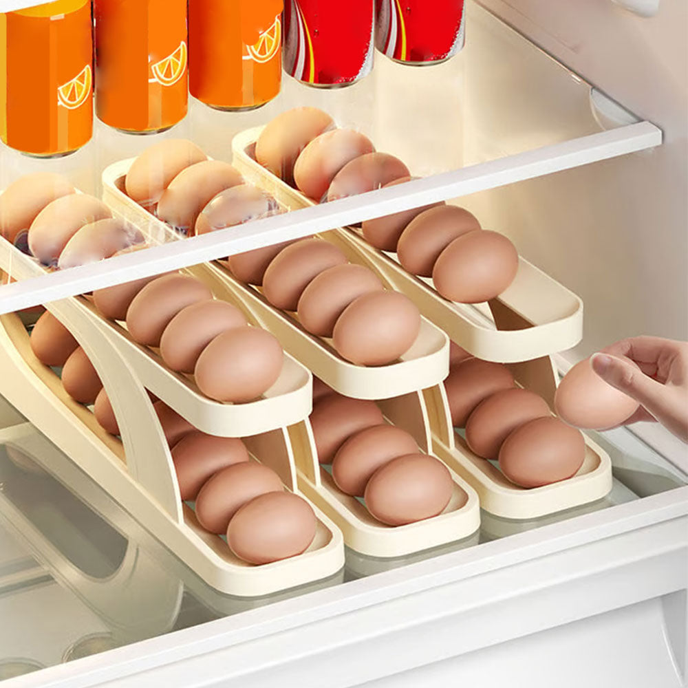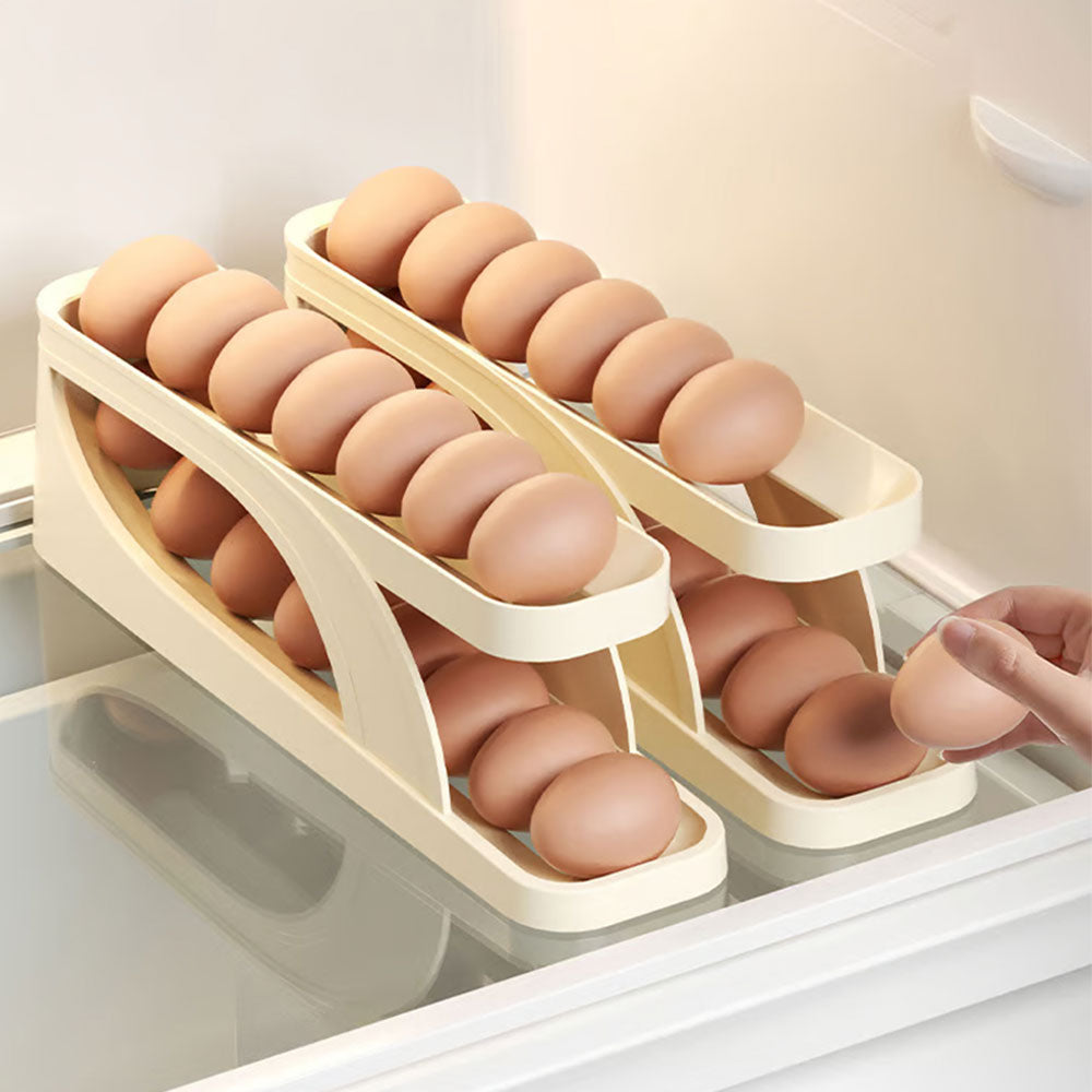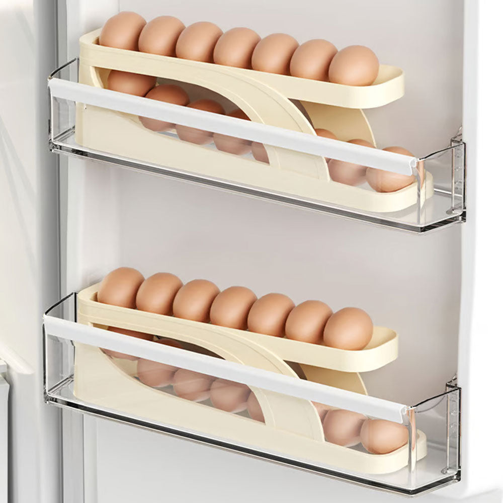 - The Roll-Down Double-layer Egg Dispenser is convenient to use in fridges, freezers, and kitchen cabinets. It is a great way to add storage and organize, ideal for sorting and storing eggs.