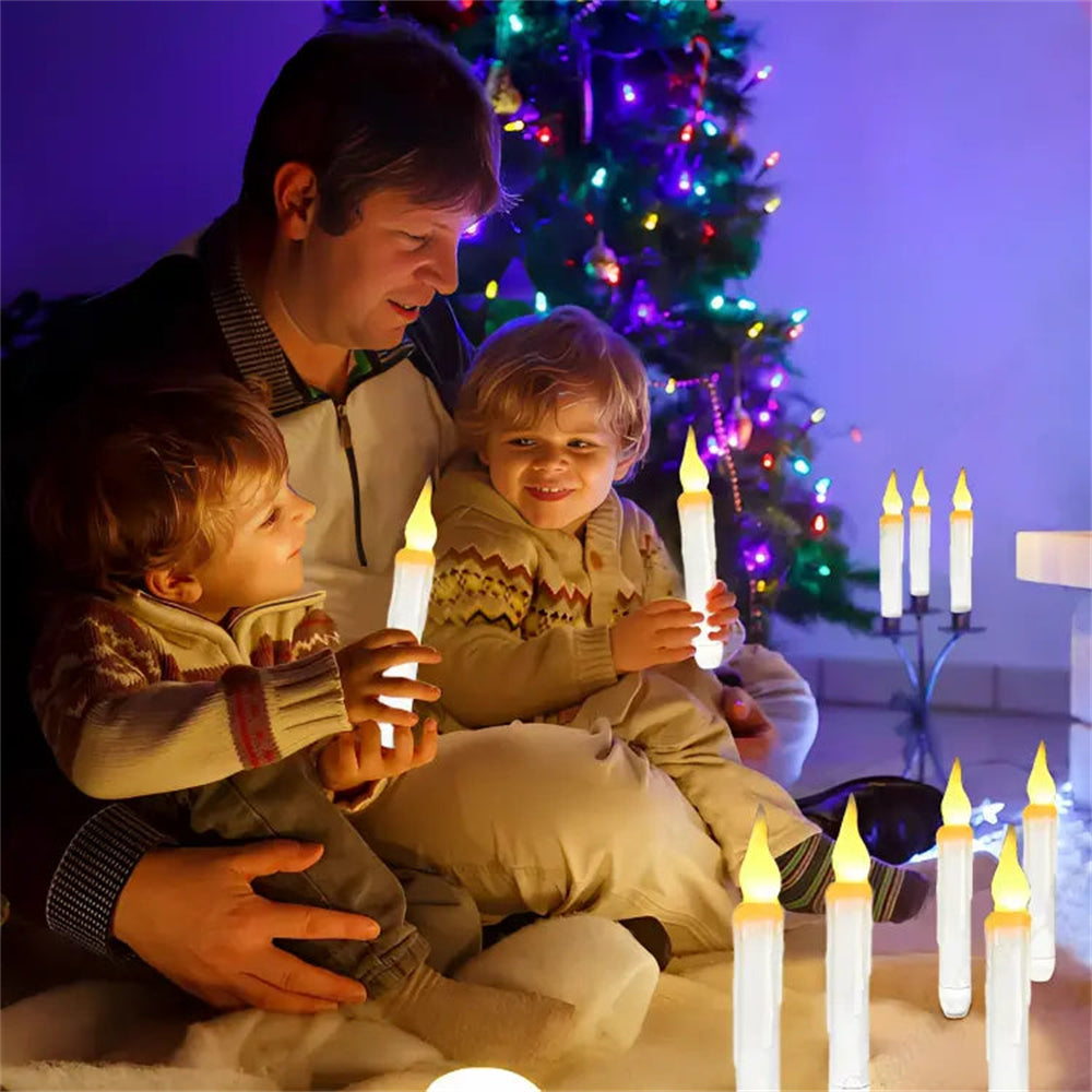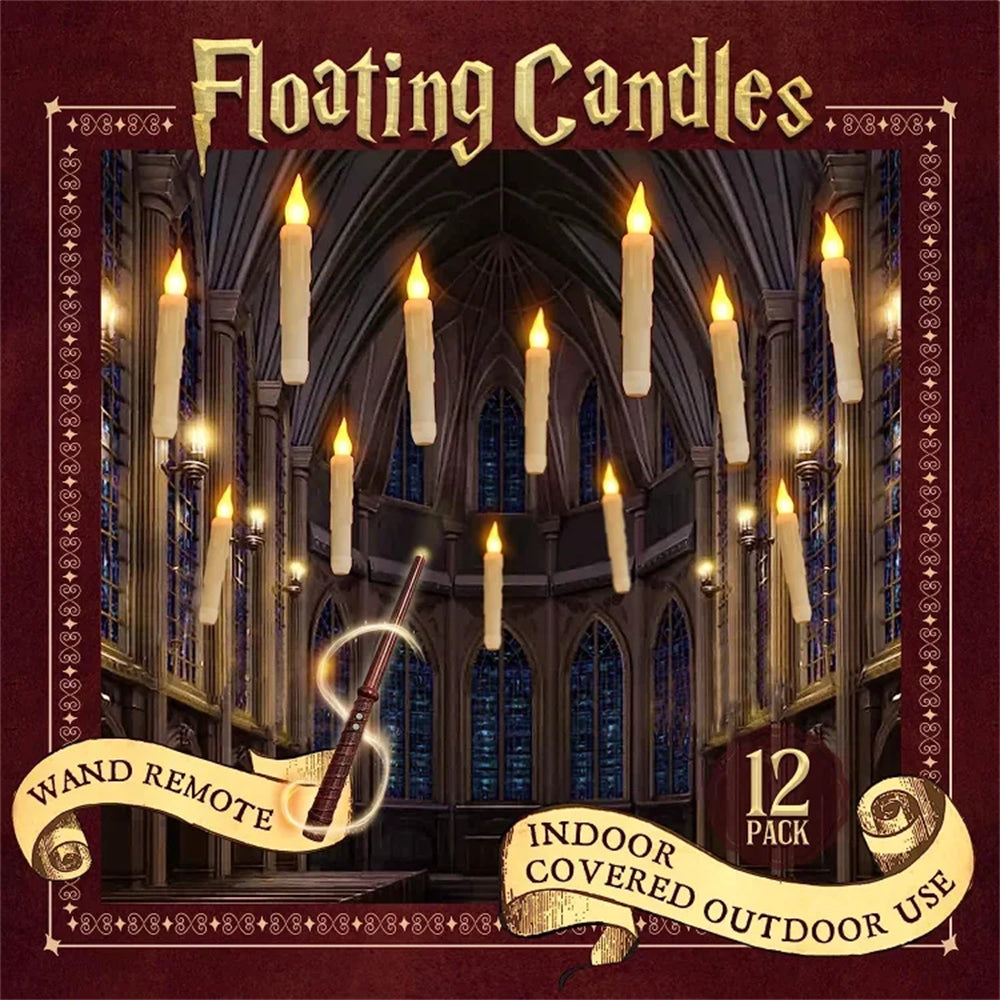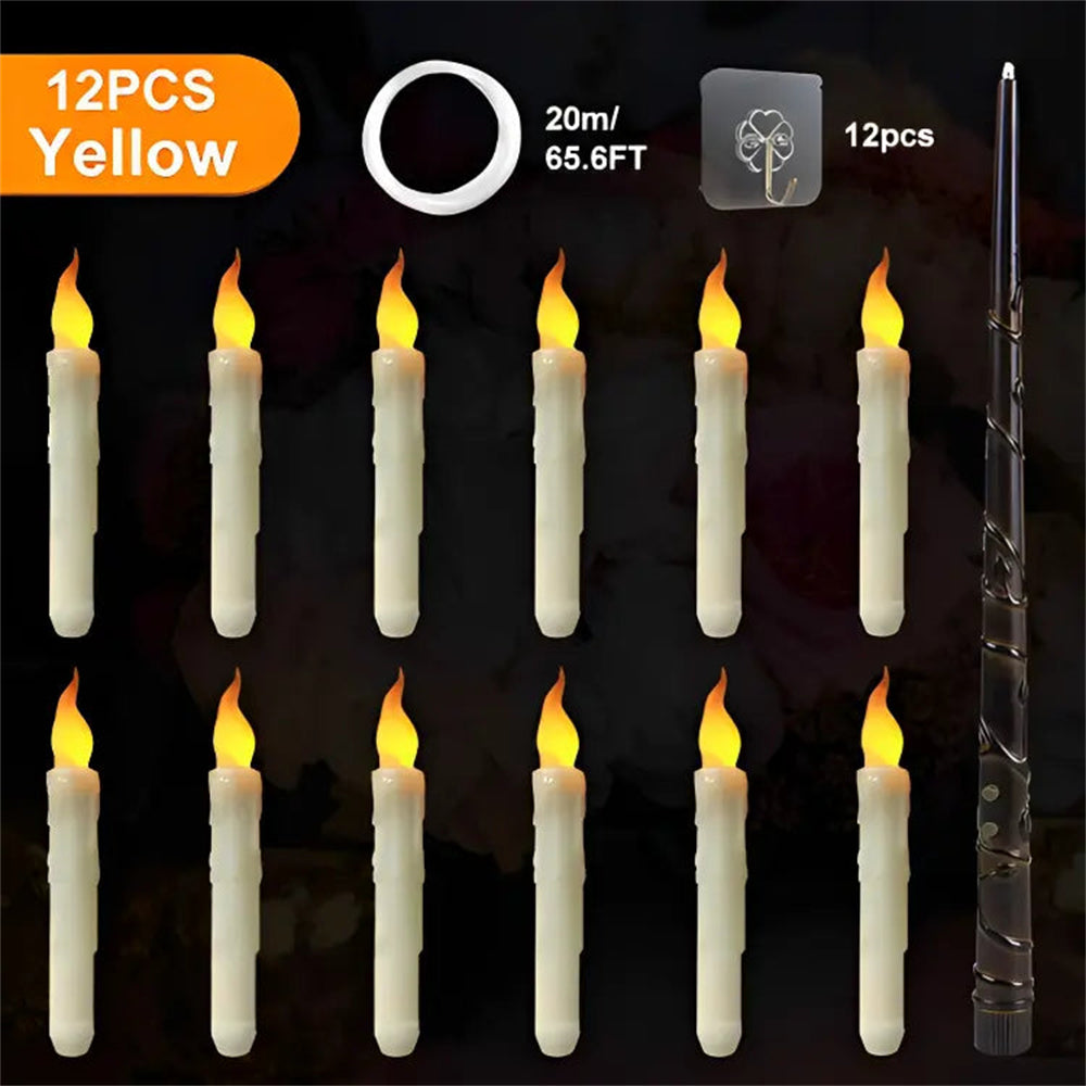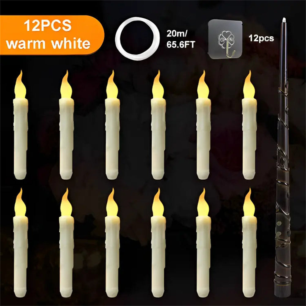Led Battery Operated Flameless Taper Hanging Floating Candles with Magic Wand Remote