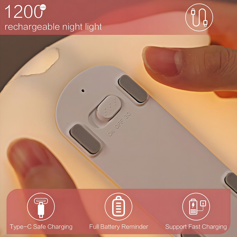 3 Levels Dimmable & 30mins Timer: With 3 brightness settings controlled by a simple tap on the animal's bottom, plus a convenient 30-minute auto shut-off feature, this night light provides the perfect amount of soft, warm lighting for a cozy atmosphere. Equipped with a built-in 1200mAh rechargeable battery, this panda lamp can run for up to 6-8 hours on a single charge, making it portable and wireless for use during nighttime feedings, camping trips, or as an emergency light.