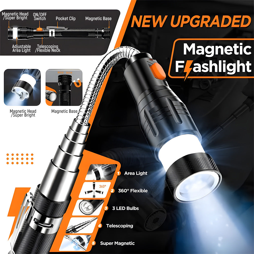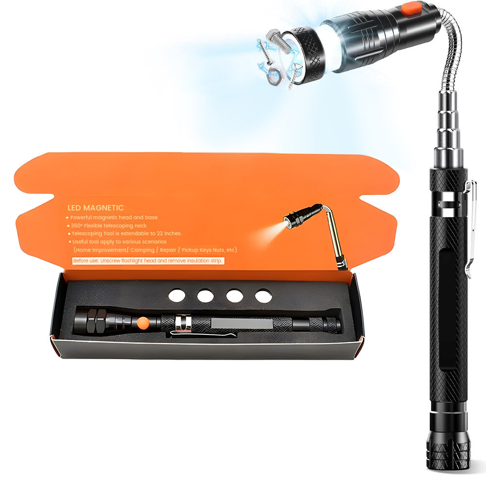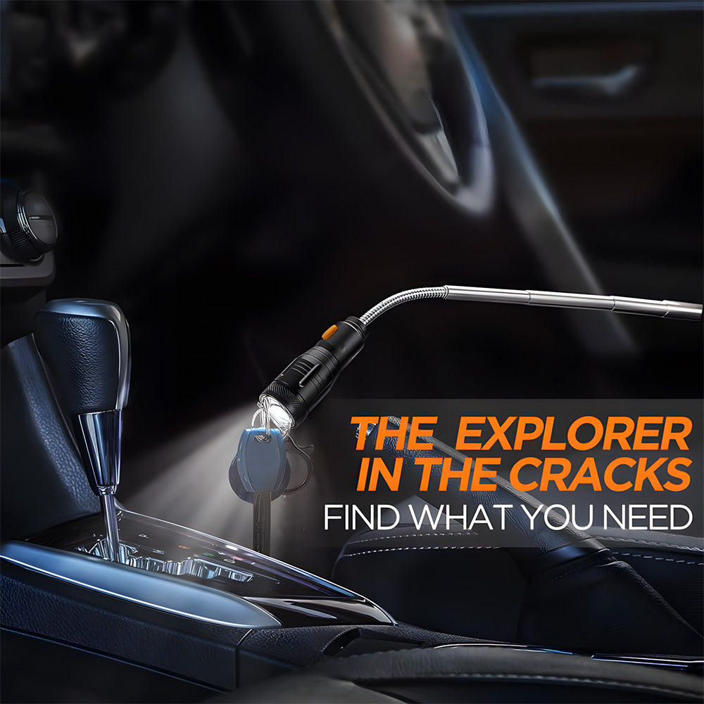 ADJUSTABLE - Our telescoping magnet tool includes a 22" extendable neck that is 360º flexible. Designed for maneuvering around hard-to-reach places. A true essential when it comes to working in a garage, nooks, or at a tight angle.