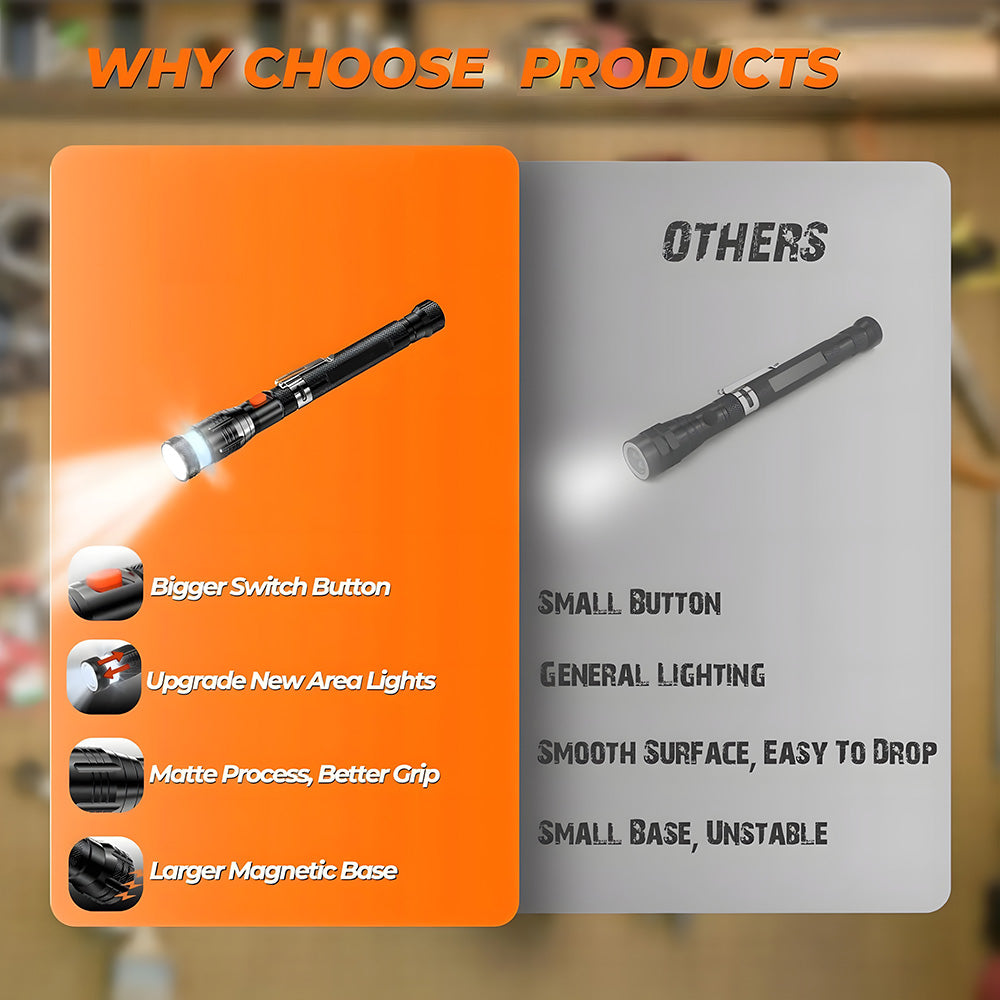 POWERFUL GRIP - Easily retrieve dropped items such as nuts, bolts, nails, and screws with our magnetic tool. It also features a strong magnetic base for hands-free use when placed on a metallic surface.