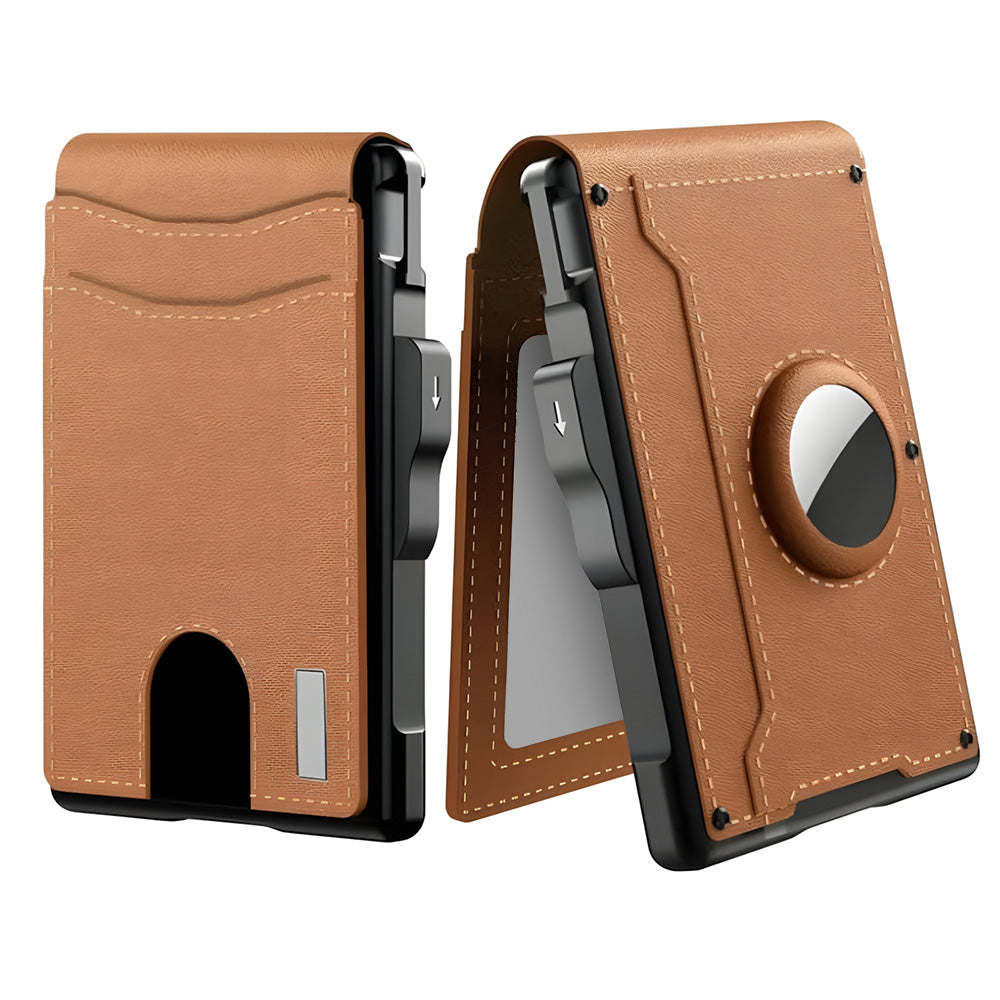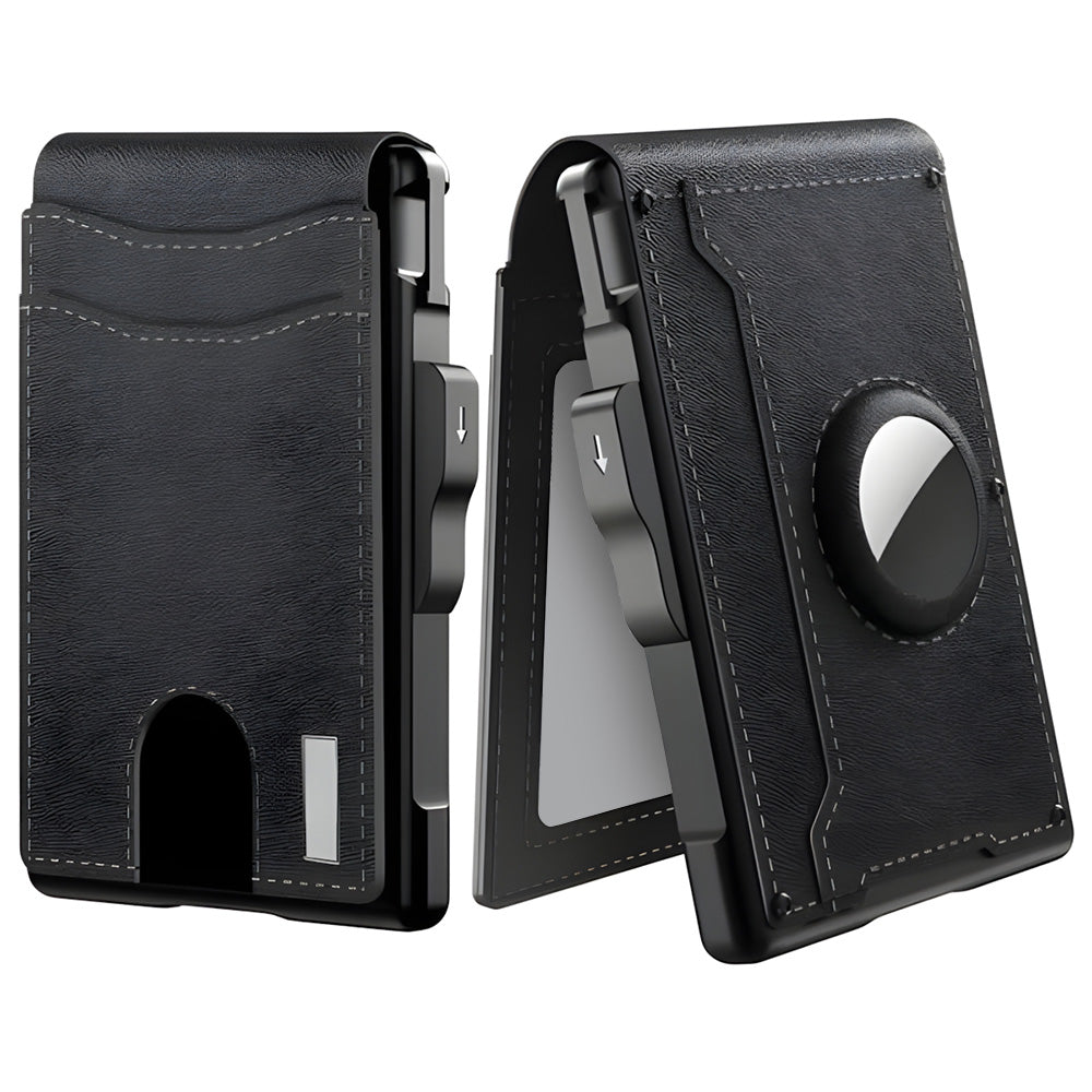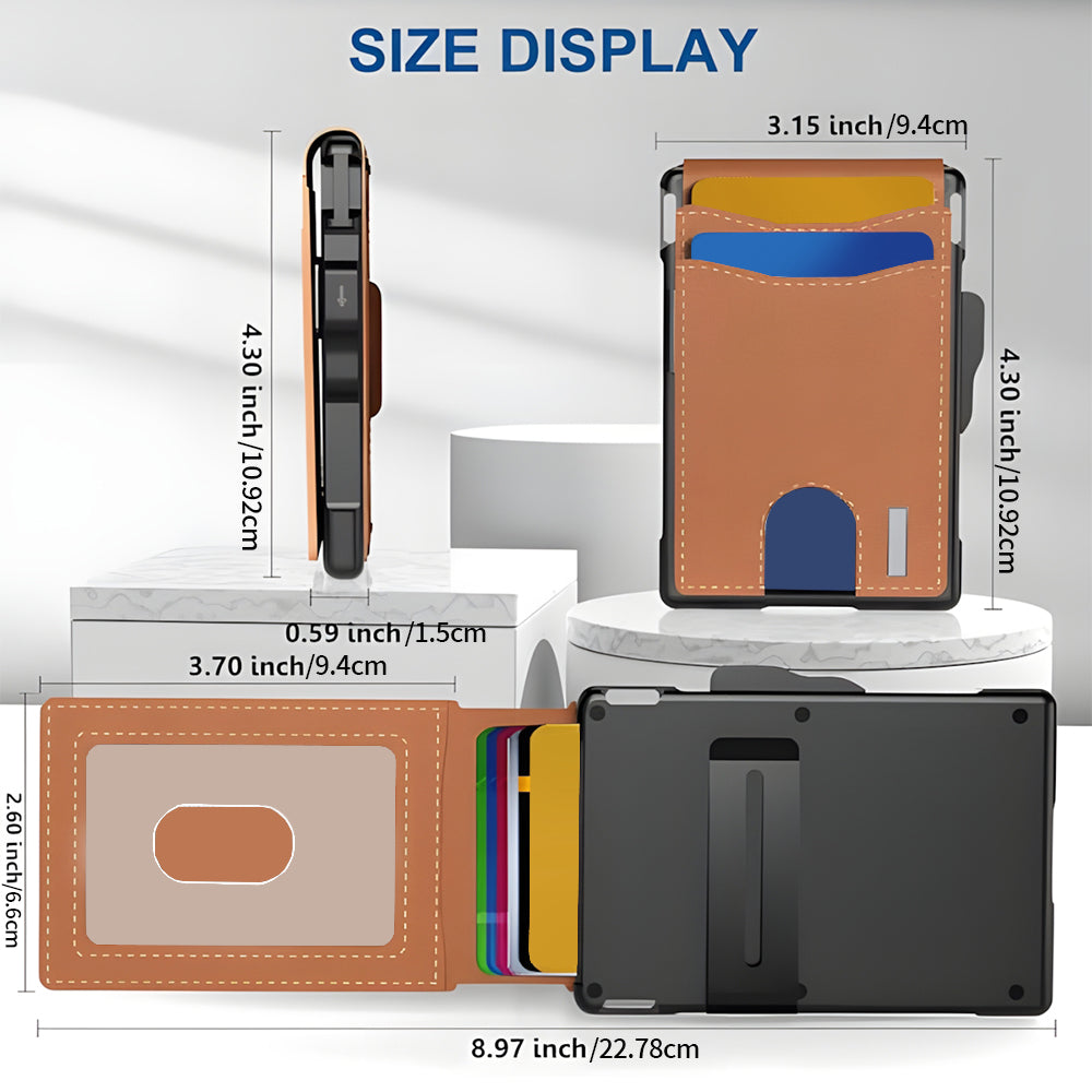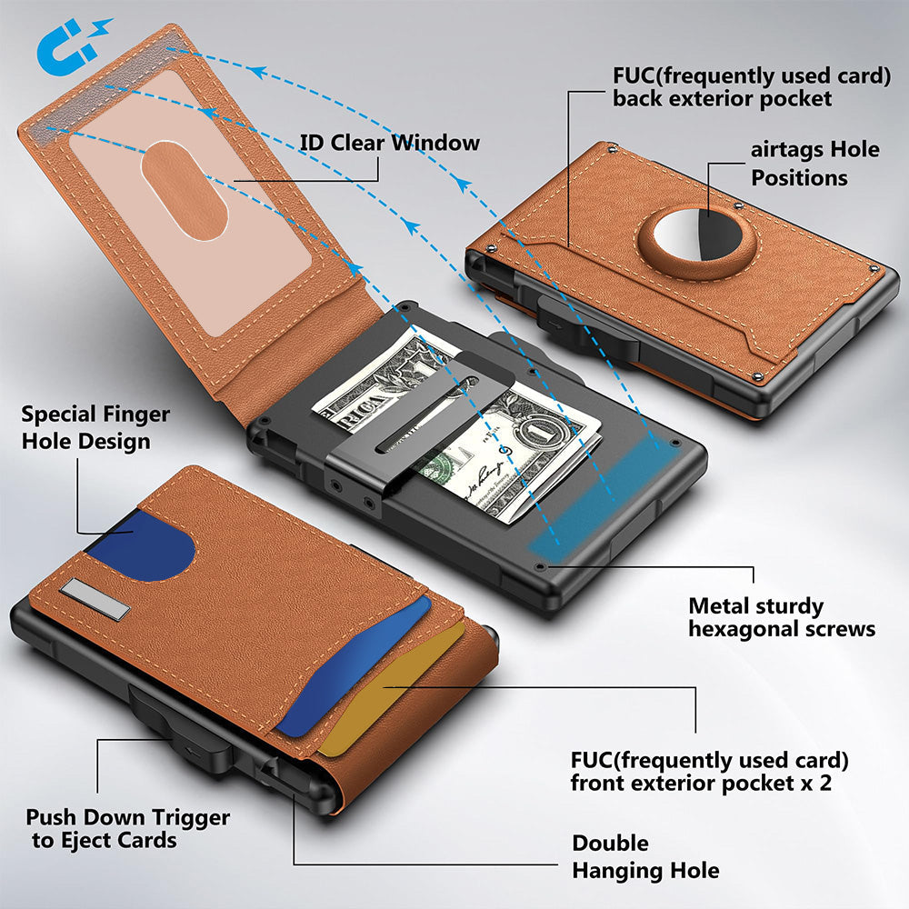 🔥✨Wallet for Men - With Pop Up Aluminum Case Money Clip Slim Leather Slots Credit Card Holder RFID Blocking Bifold Minimalist Wallet