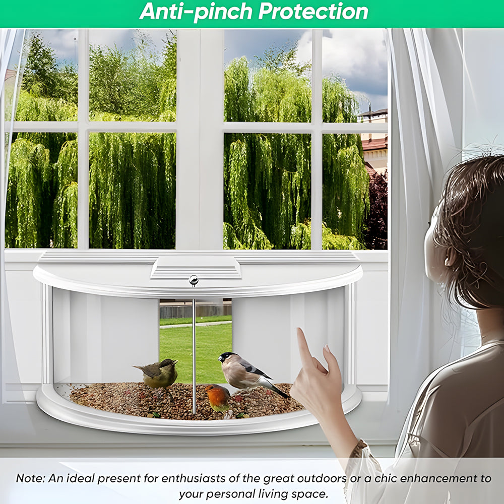 - 180° BIRD WATCHING PANORAMA: The 180° panoramic design in the window bird feeder for viewing offers you the high-resolution interior view. Allows you to observe birds up close even in a warm room. Get in touch with nature and relax. Add interest to life.
