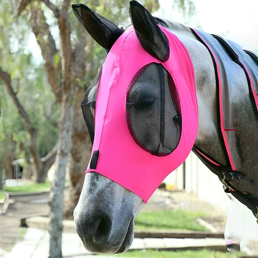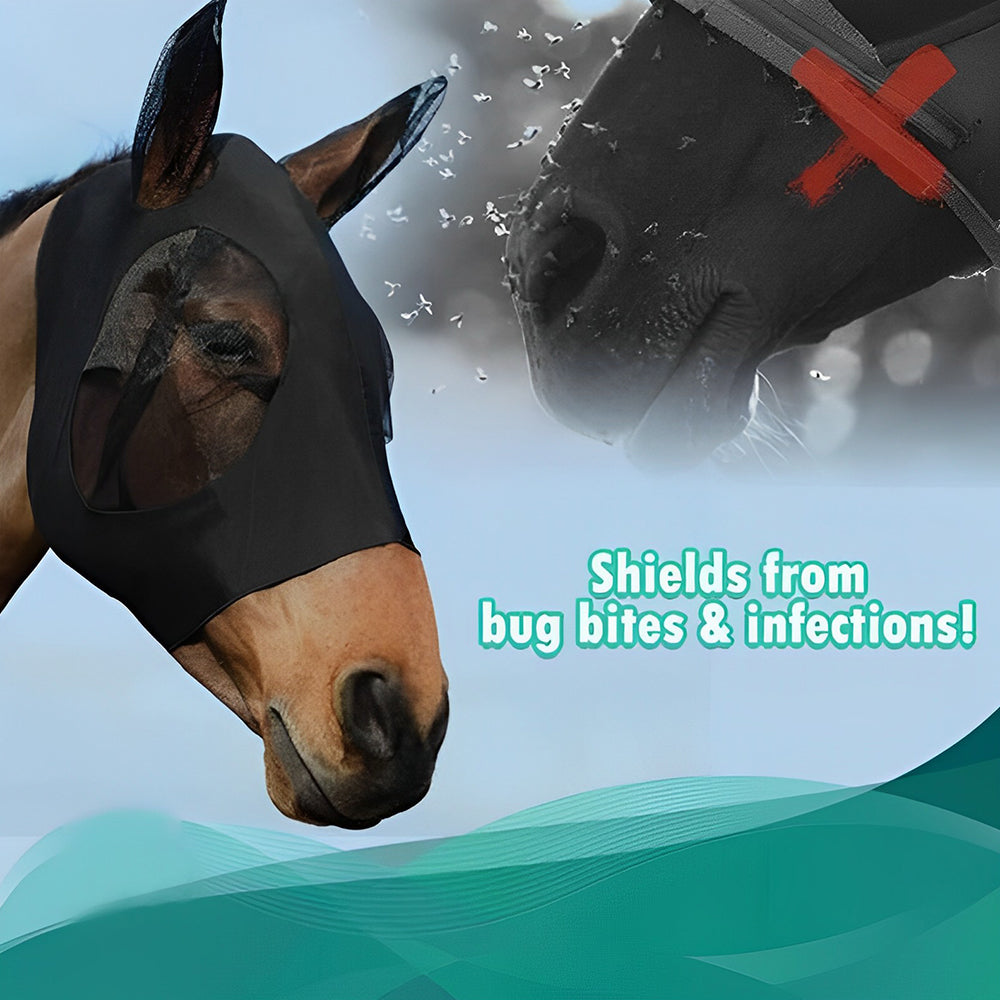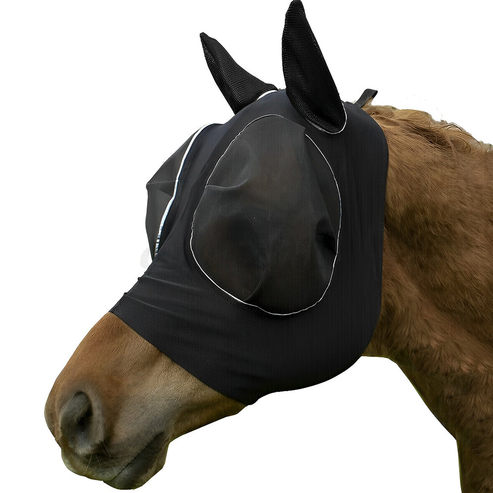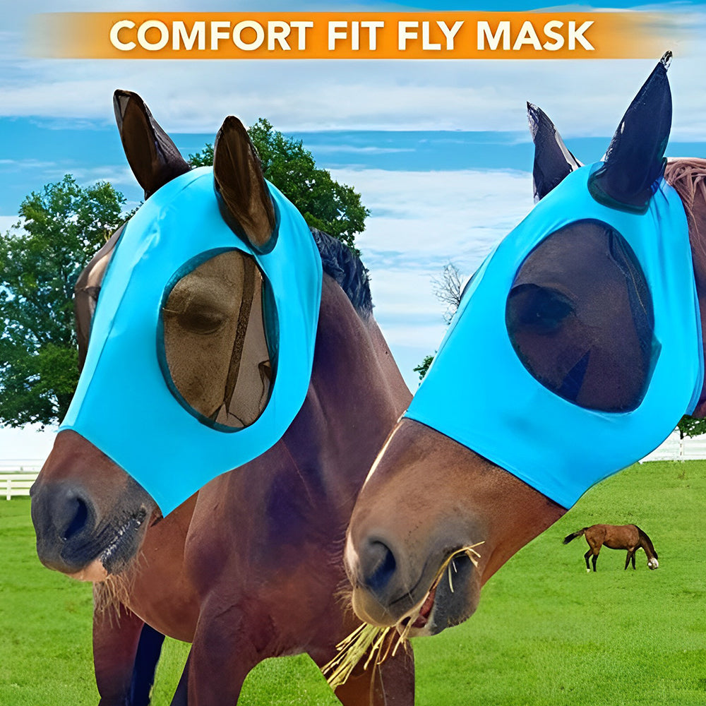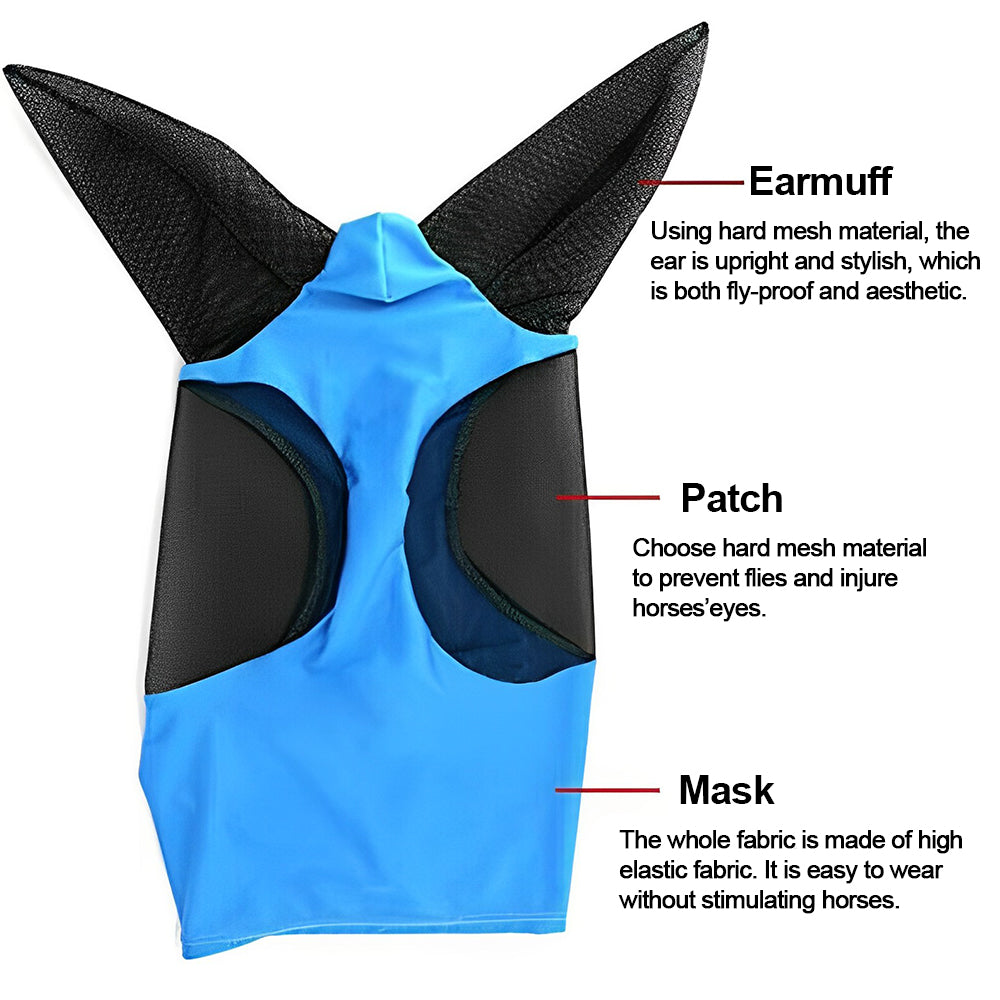 UPDATED DESIGN: Our Horse Fly Mask is made of high-elastic comfortable fit polyester and lycra with high-strength soft nylon mesh to cover the eyes and ears. Allows good air circulation.