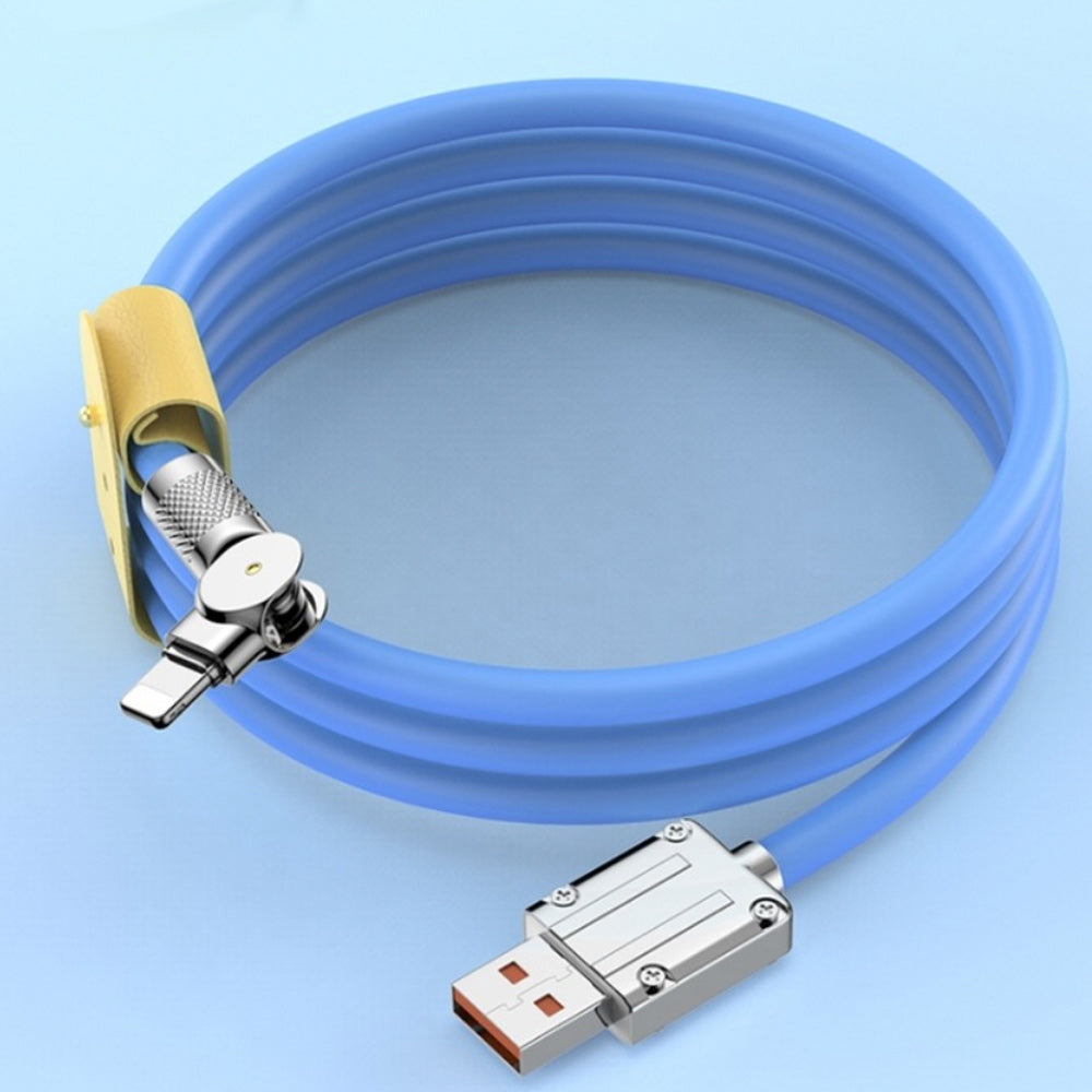 Break free from traditional constraints with our data cable featuring a 180-degree rotating connector. Effortlessly plug into your device from any angle, eliminating awkward bends and twists. Enjoy unparalleled convenience and adaptability in every connection.