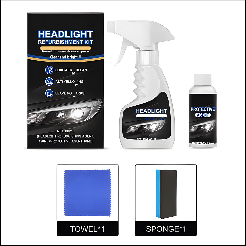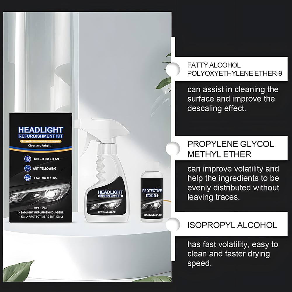 Complete Restoration Kit: Includes everything you need: cleaning spray, polishing compound, and microfiber cloth for a flawless finish.Improve light transmittance.
