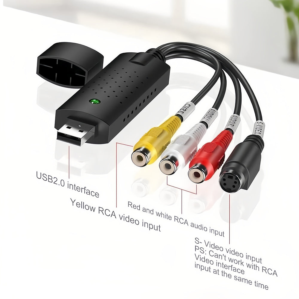- 💡【Video Capture Card】USB 2.0 Video Capture Adapter provides a link between a PC and a video device with an RCA connector or S-Video connector, such as VHS, VCR, DVD, Hi8, TV BOX. save your precious memories from VHS tapes onto your PC hard drive. Supports HD Video File Input.