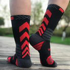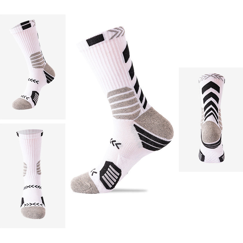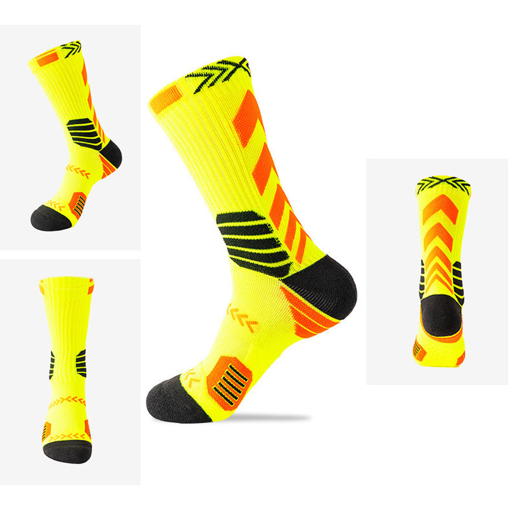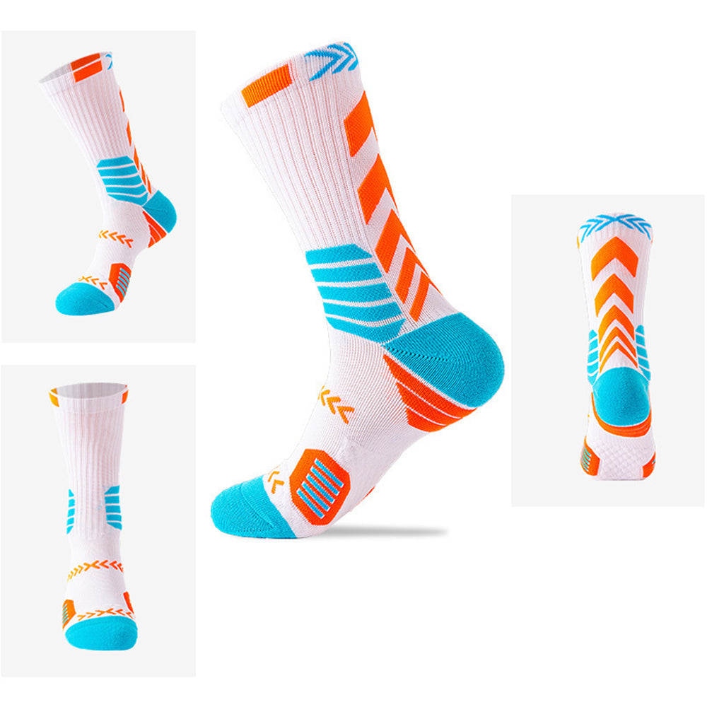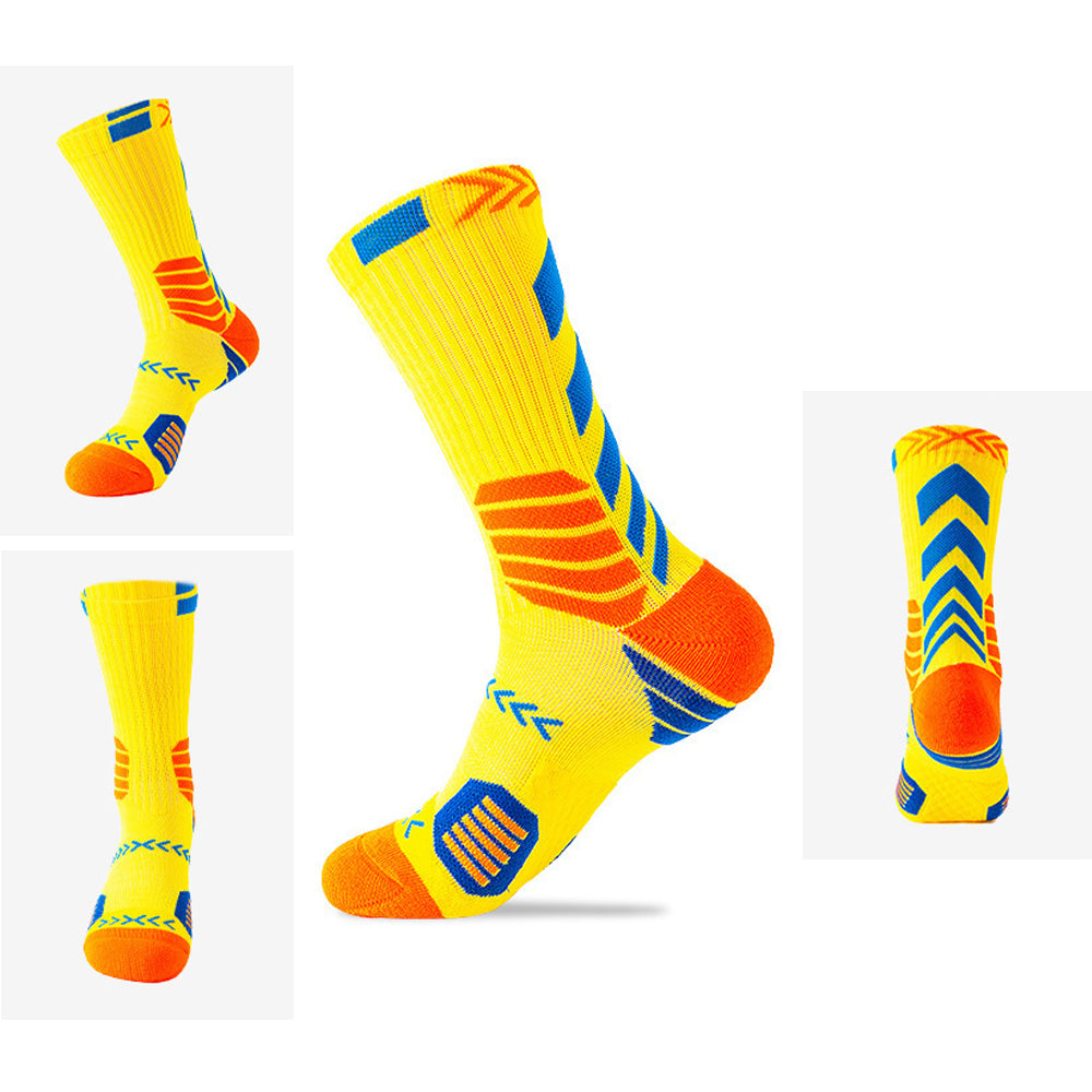 Basketball Socks Material: 80% Cotton + 15% Nylon + 5% Spandex, Quick Dry fabric helps to keep feet dry, featuring moisture-wicking/moisture-management fibers and air-circulating ventilation channels.