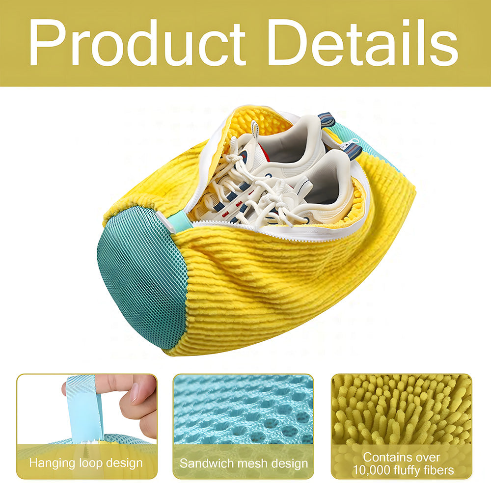 【Perfect 360° Cleaning】 Our shoe wash bag features an innovative three-layer mesh design and over 10,000 pom-poms to deeply clean your shoes and achieve perfect results.