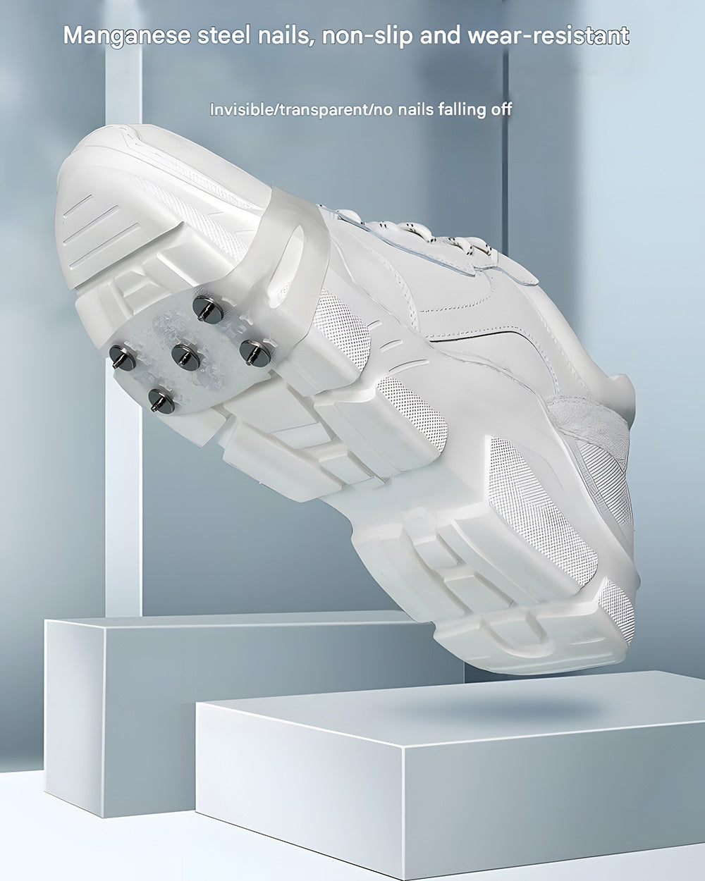 ✨ Strong anti-slip design: The 2.5mm diameter cylinder structure grips the ground firmly and enables stable walking on ice and snow roads.