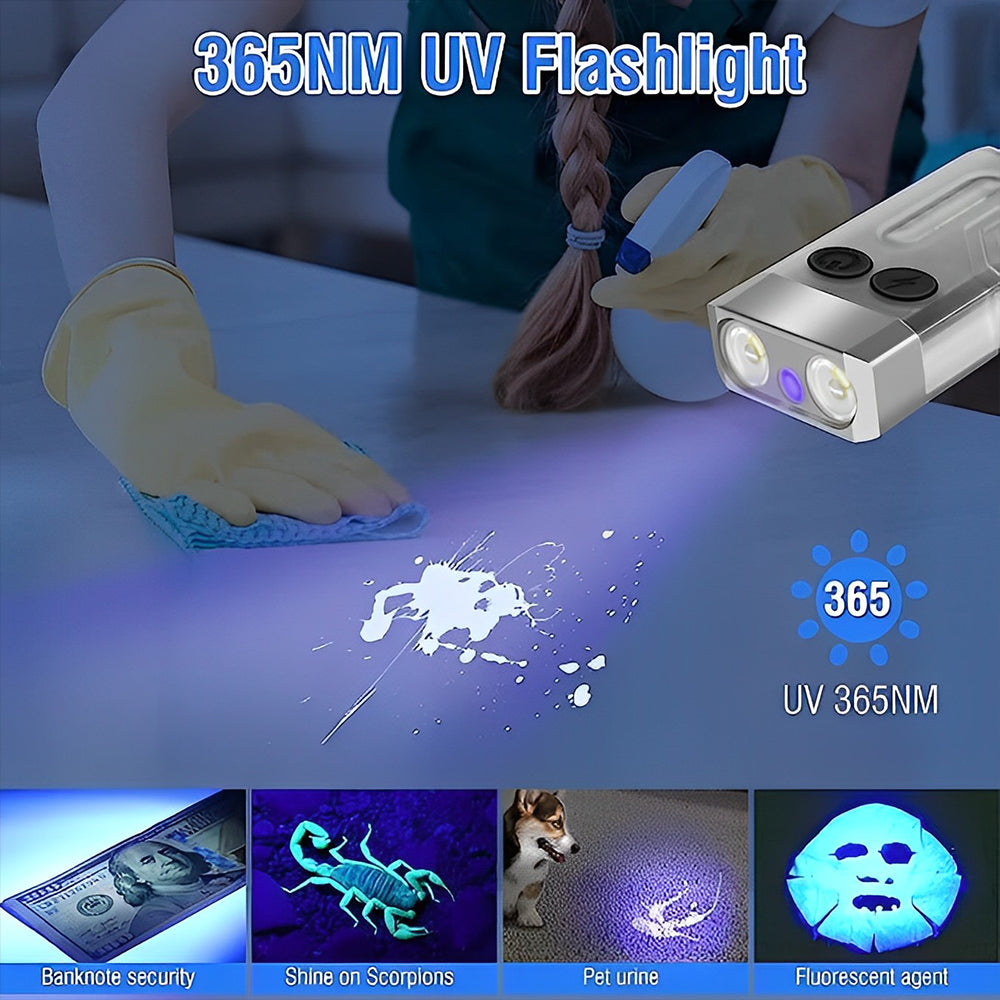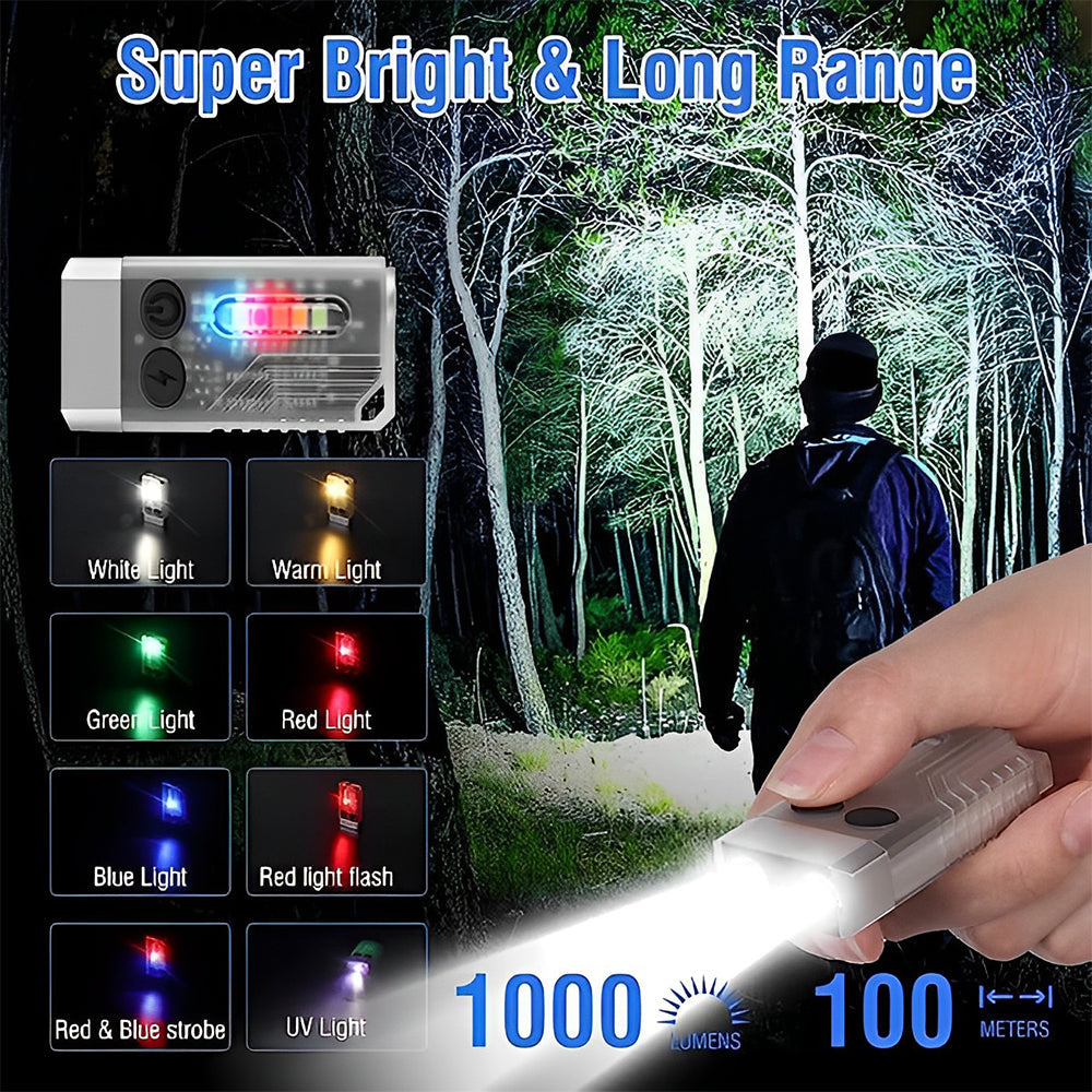 Small Powerful EDC Flashlight with Red UV Blue Light -Super Bright 1000LM