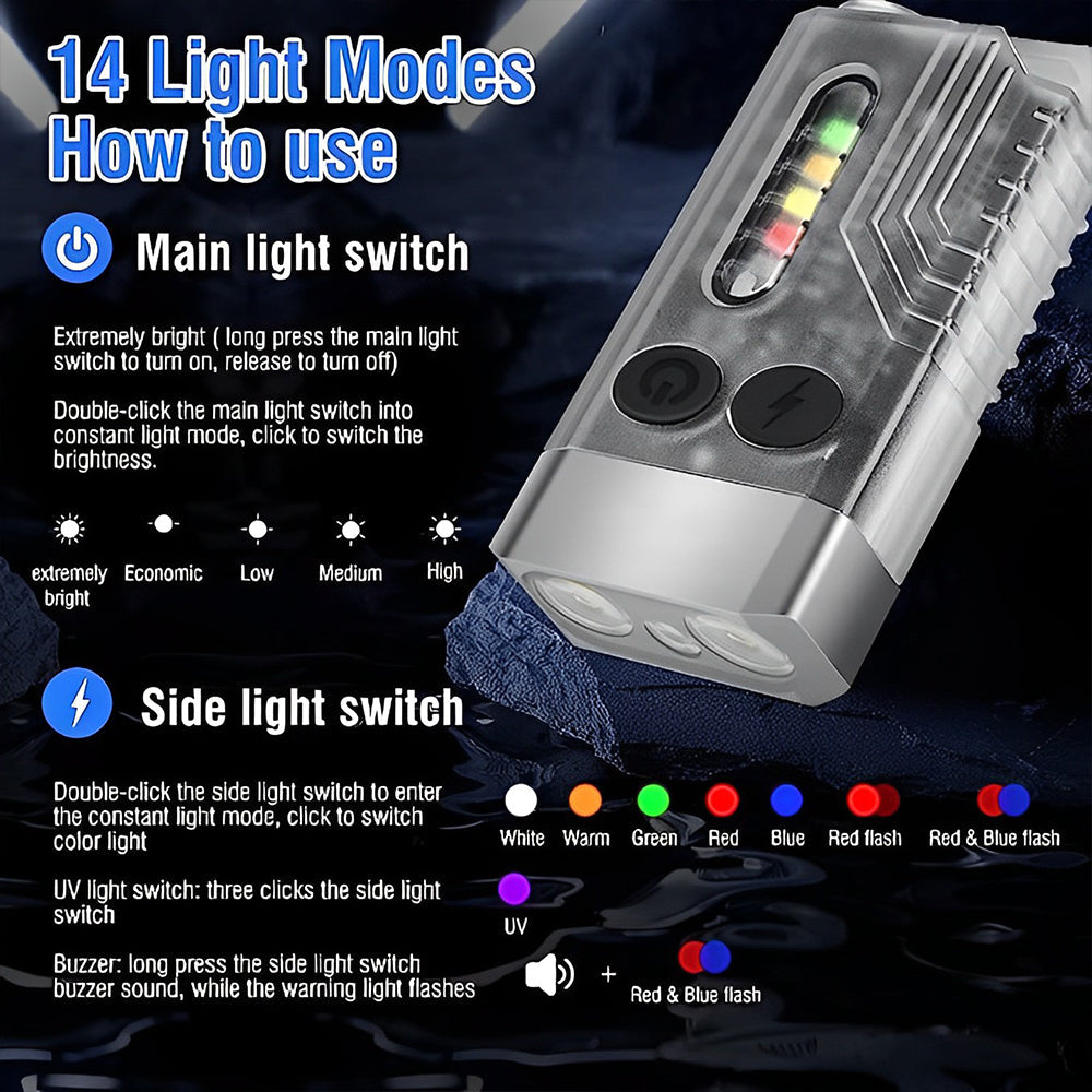 Mini LED super bright flashlights with 14 light modes including 365nm UV light and buzzer