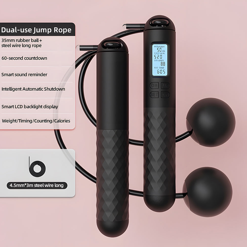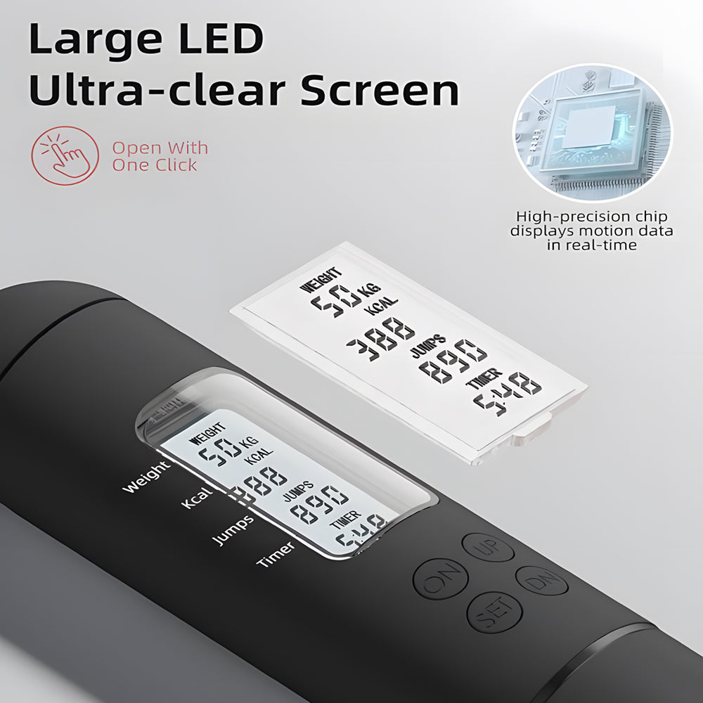 - 【LED display】The digital jump rope features an HD LED display that shows the Timer, Weight, Calories, and Circles. Set your weight and track time, number of jumps, and calories burned to achieve your fitness goals more effectively.