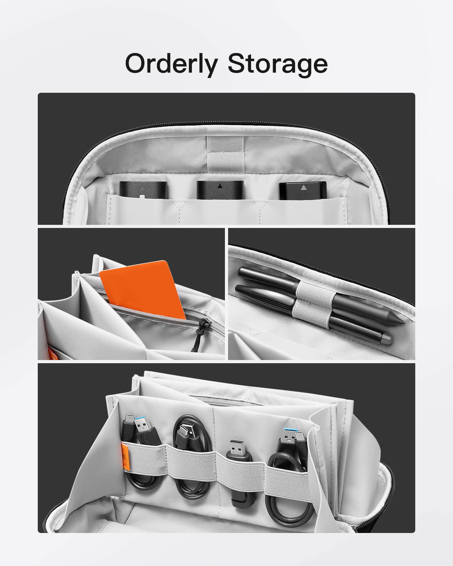 • Super Strong Storage: The bag has 23 multi-purpose storage spaces, so you can store chargers, hard disks, USB cables, mobile power supply, mouse, earphones, game cards, pens, etc. This bag is ideal for storing small items around your PC.