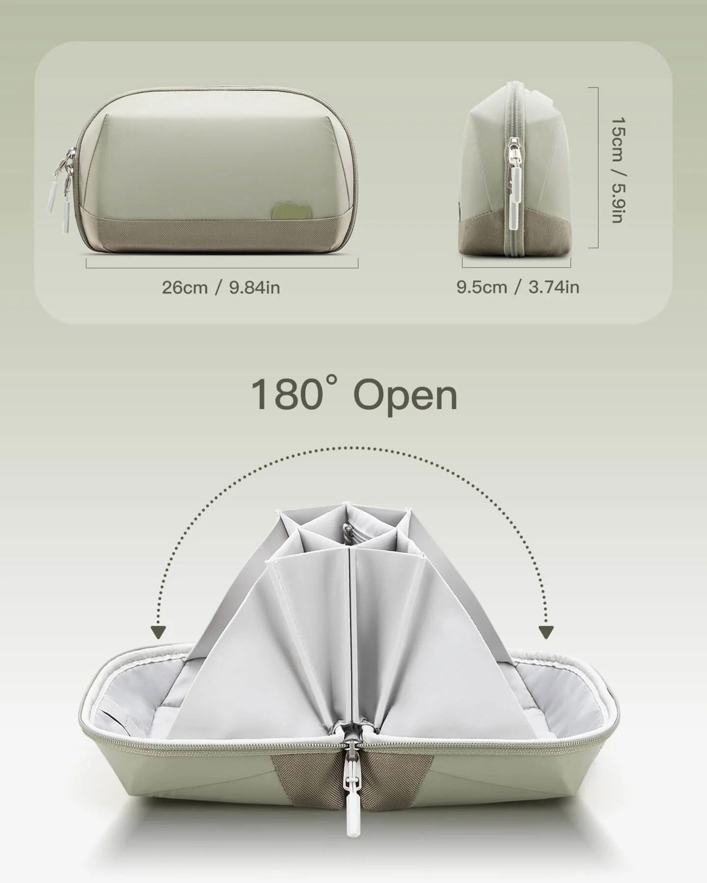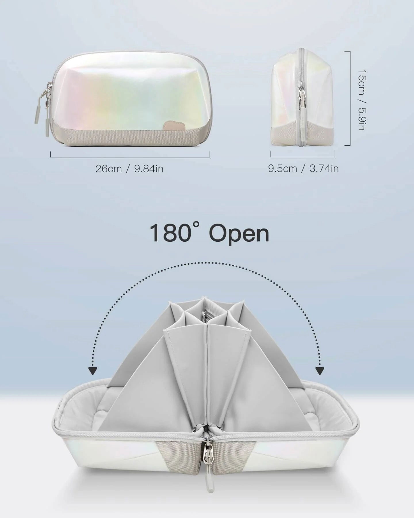 • (180Β° Opening Design) The interior features an origami design that opens 180Β° like a book, making it easy to organize items and make it more convenient to insert and remove small items around the PC. When looking for things, the 180Β° opening design allows you to open the zipper and find things.