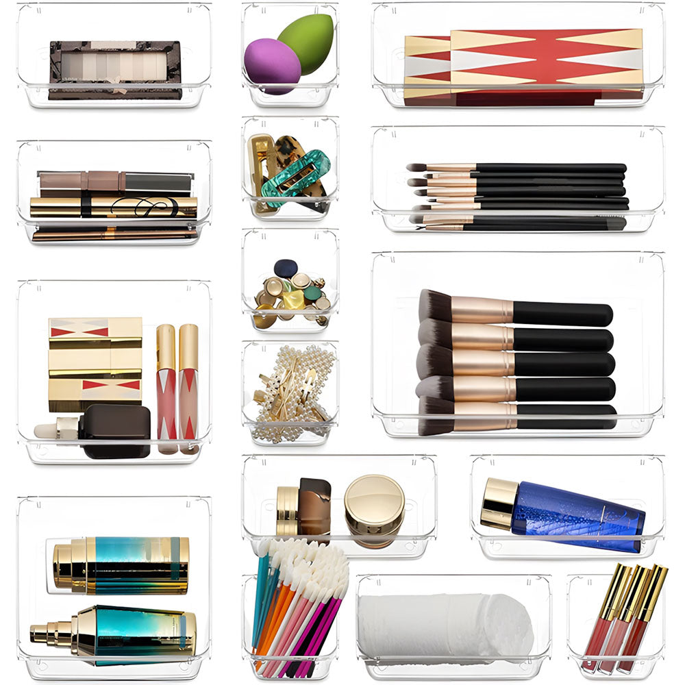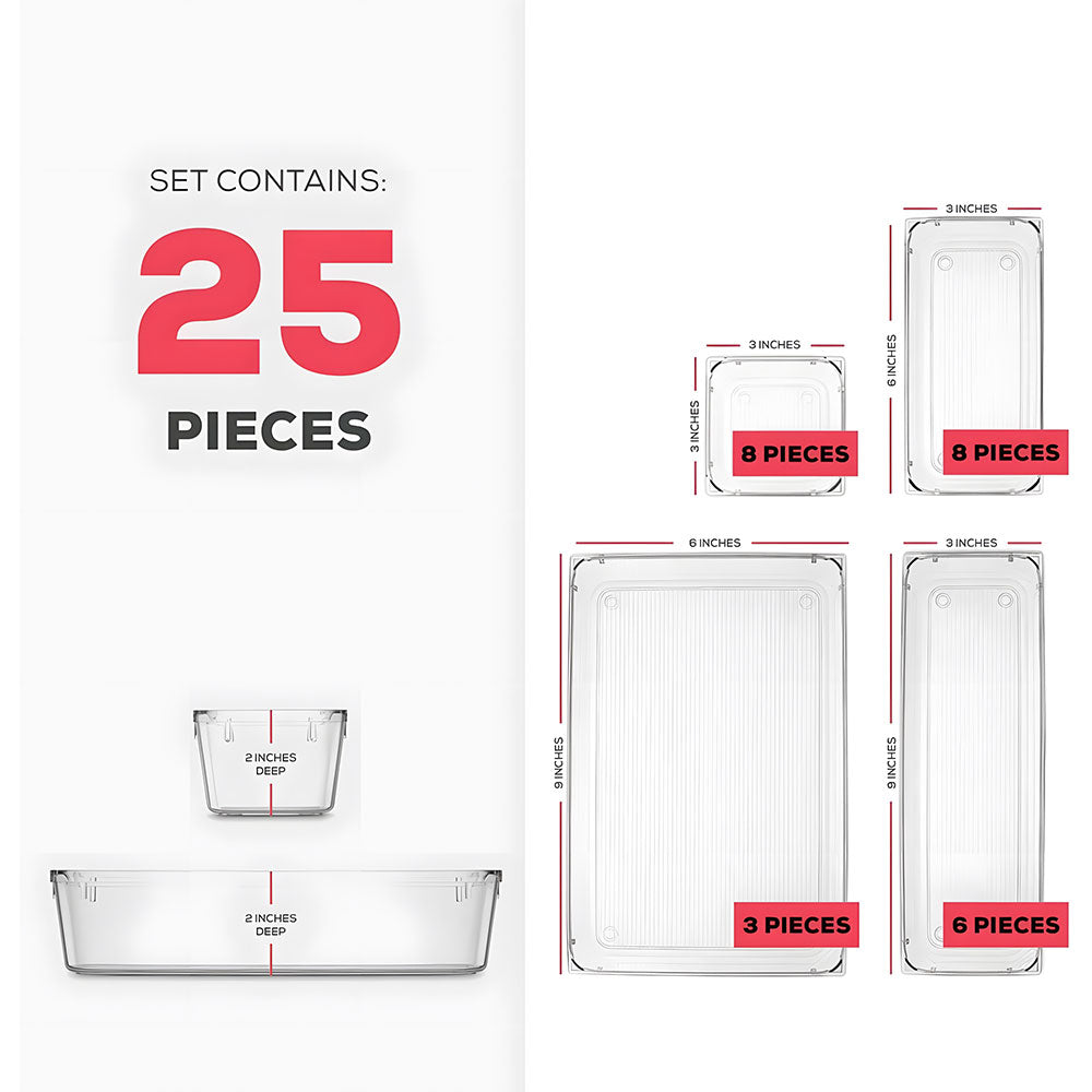 - A: The set includes 4 different-sized trays to fit all your organizational needs.