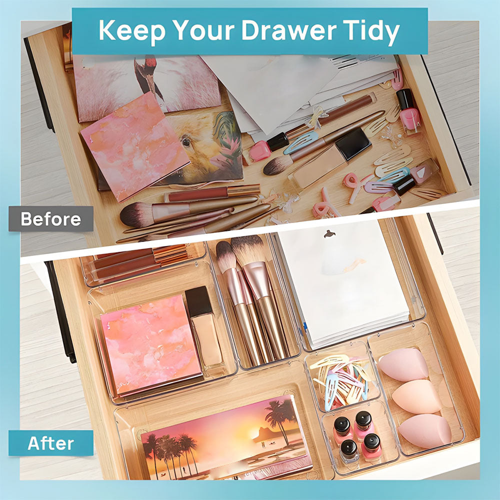 - PROVIDE LONG-TERM SERVICE: These clear drawer organizers are made of high quality plastic, not easy to break or deform, safe and reliable, no odor, rounded edges to ensure the safety of use, you can rest assured to use them.