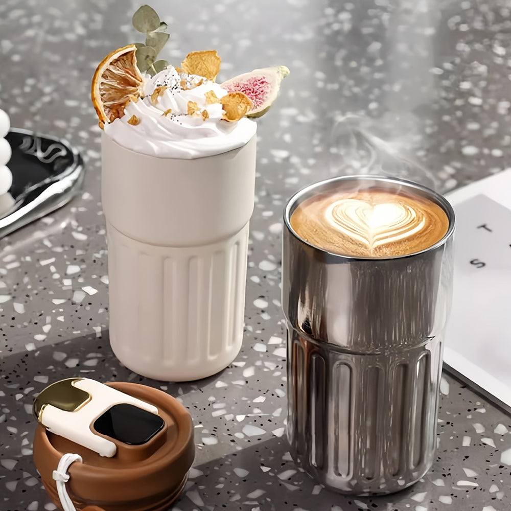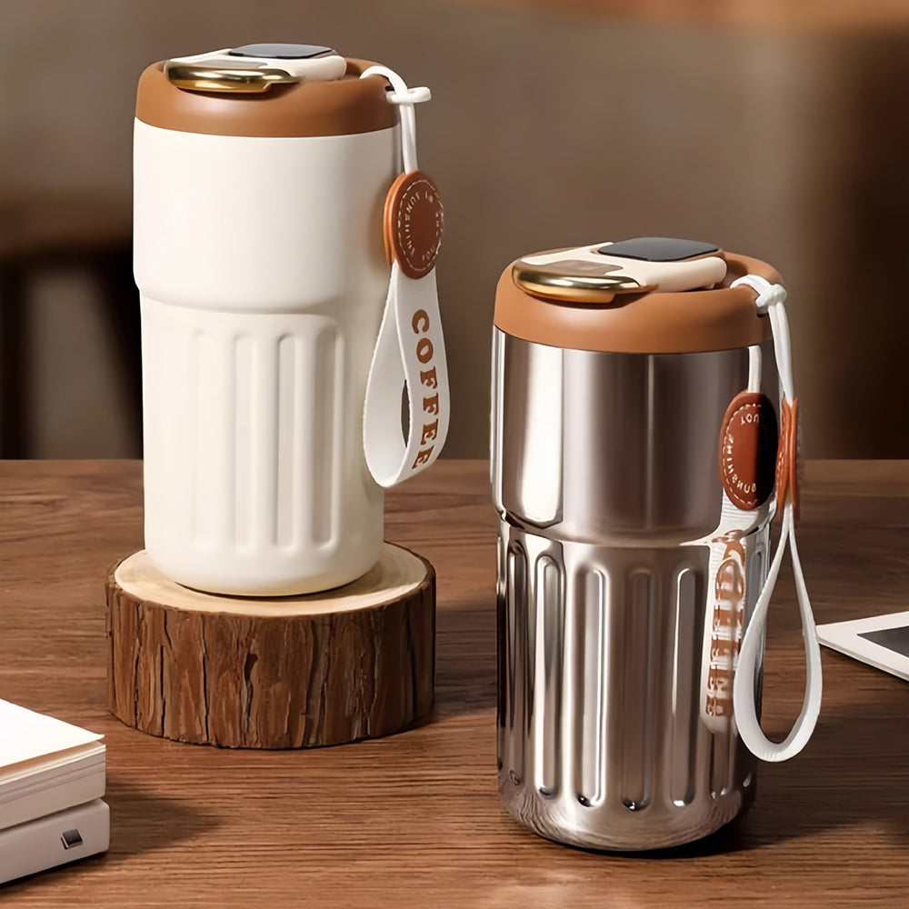Introducing our portable coffee thermal mug with temperature display, a must-have for coffee fans who appreciate precision and convenience.