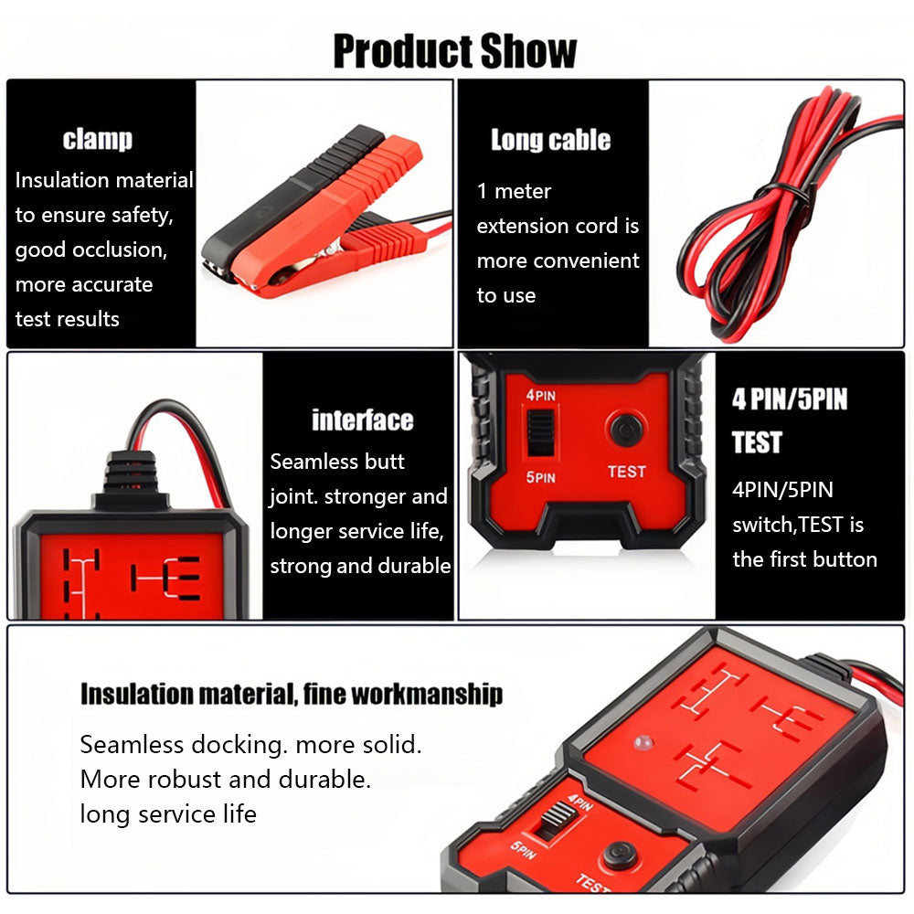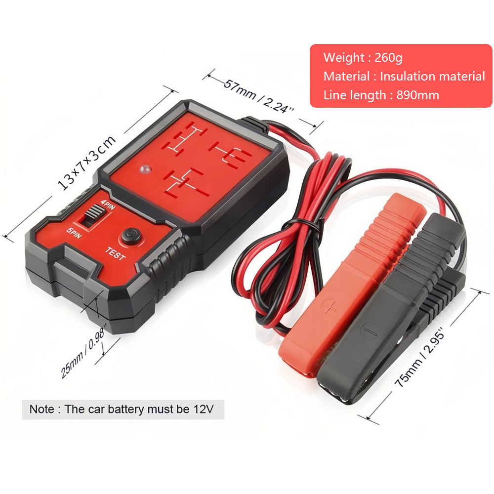 • Suitable for most general-purpose automotive relays on the market. When testing, it needs to be connected to the car's 11V-15V battery. The car battery must be a 12V battery, and the battery voltage must be between 11V-15V;  The applicable coil resistance is preferably above 20 ohms.