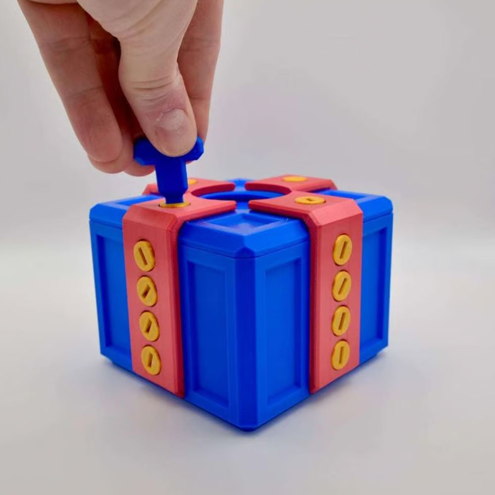 This unique 3D printed box is not only a gift, but a fun challenge that will give each recipient endless fun and surprises as they search for the key and unscrew the bolt. Whether it's a birthday, a holiday, or any celebratory occasion, this box will add joy and make everyone's gift opening experience unforgettable.