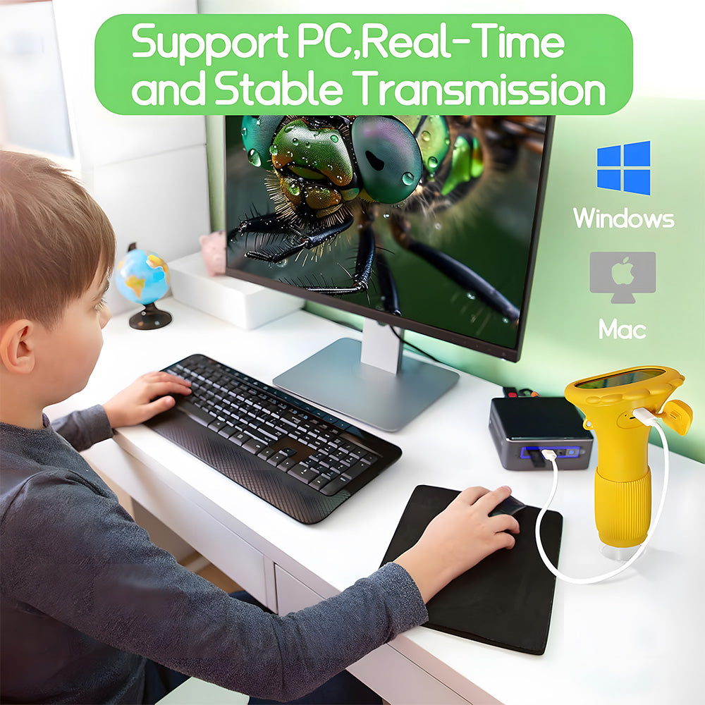 【Computer Connectivity】Connect to a PC via USB cable for a broader field of view. Observe specimens more clearly and facilitate shared exploration. When children see the microscopic world under the microscope, they will love this microscope kit and increase their interest in nature.