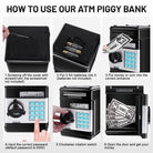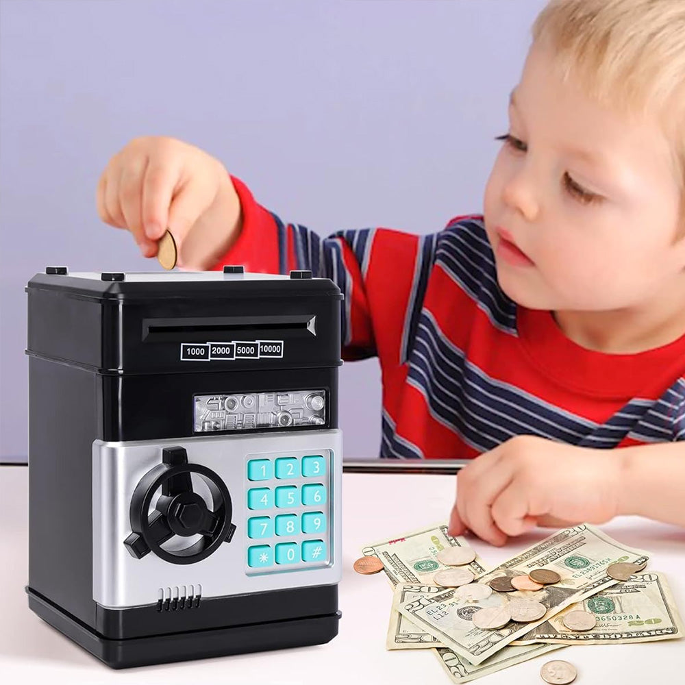 The Function of The Piggy Bank: It is protected with a 4-digit password. The initial password is "0000". You can change it to any 4-digit password. Keep your little secret to yourself, lock them in this safe.