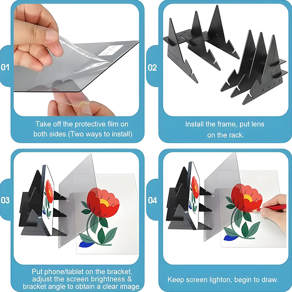 📱 Simple Setup, Kid-Friendly: Import your favorite image into the app, place your phone on the stand, and trace away! Great for beginners, kids, or anyone starting their art journey. (Reminder: Peel off protective film on both sides before use.)