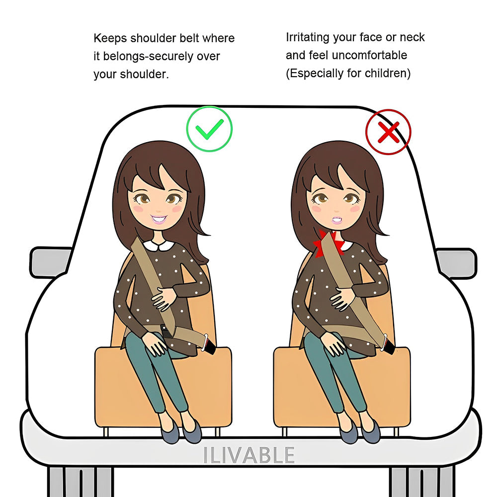 - ✔ Keep the Seat Belt Tight :Stop any sideways movement, not irritating face, neck or chest area.